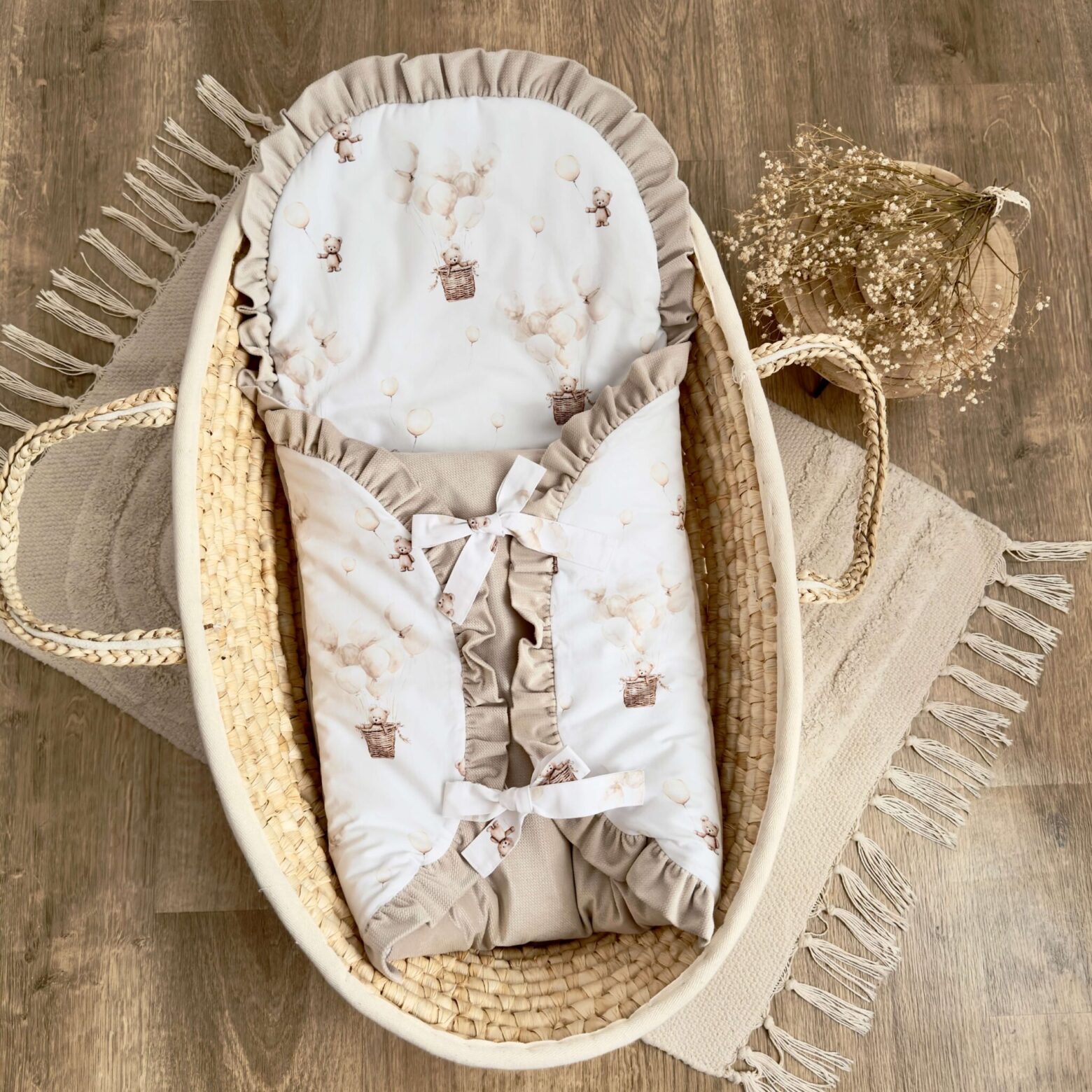 Kokon niemowlęcy z kolekcji MIŚ W KOSZYKU + VELVET beż