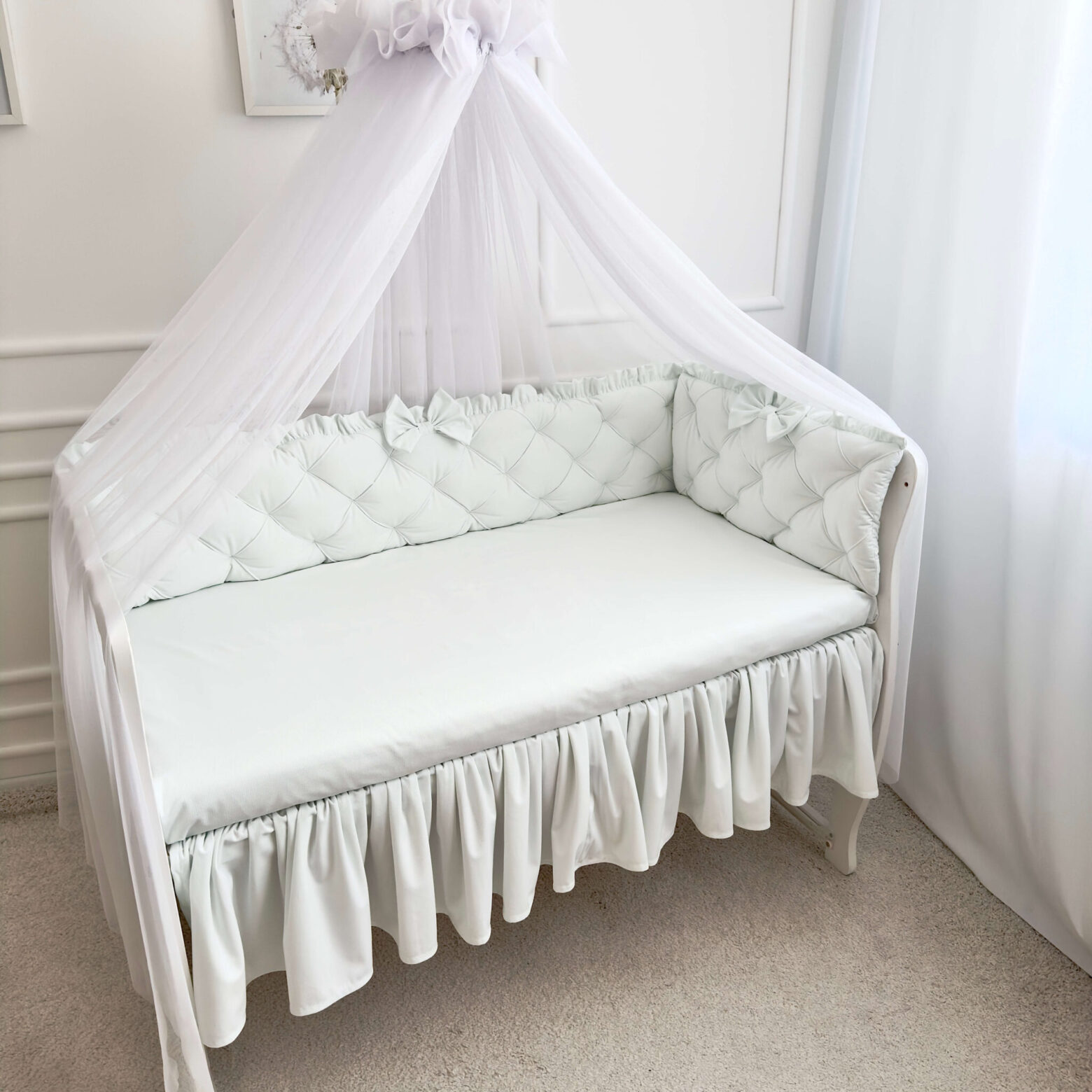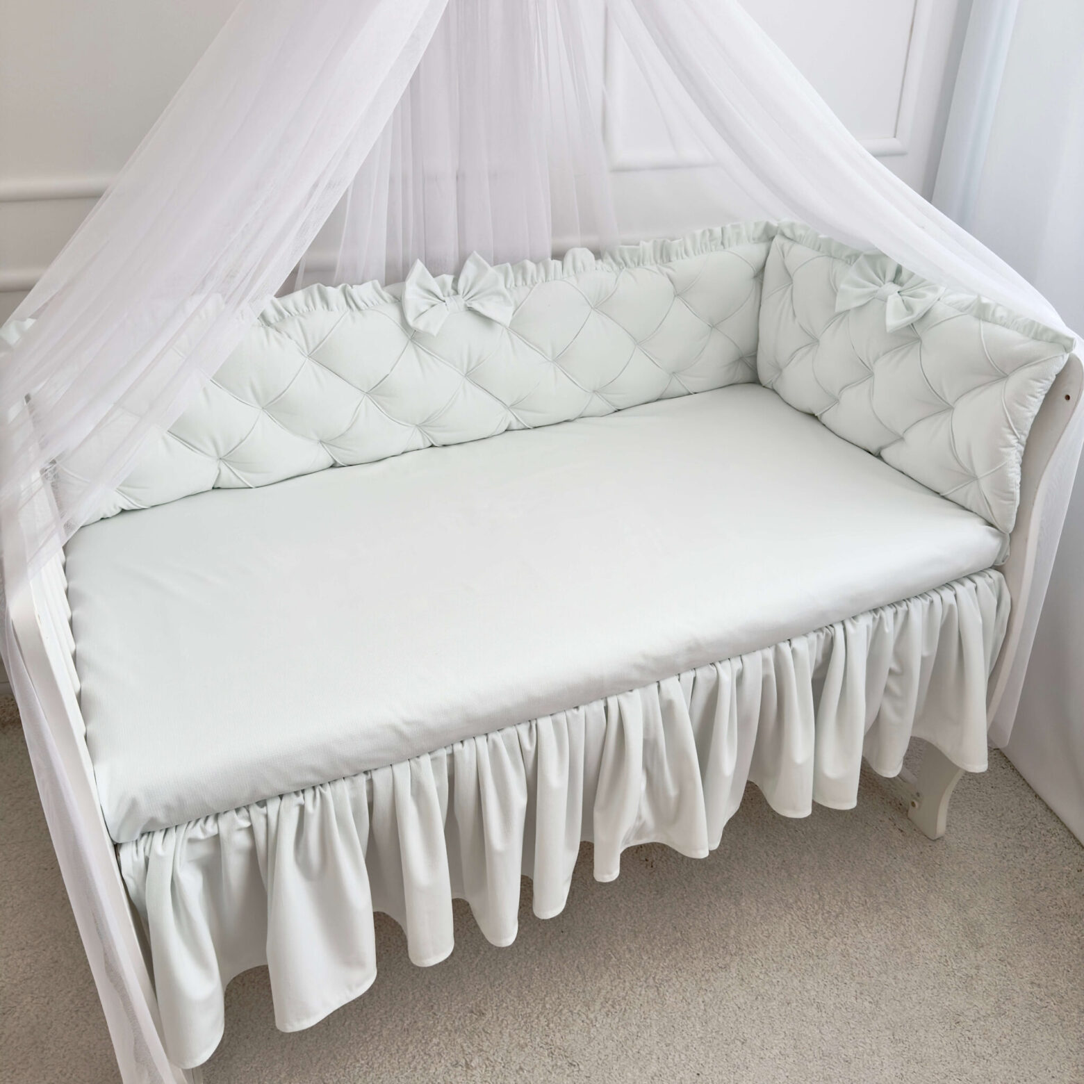 Falbanka maskująca do łóżeczka to wspaniały dodatek do wyprawki waszego maluszka. To bardzo prosty i atrakcyjny dodatek, który zakryje to, czego widzieć nie trzeba, a przy tym ozdobi łóżeczko. Falbana zakładana pod materac, gęsto marszczona, aby pięknie układała się między szczebelkami łóżeczka. Uszyta w całości z mięciutkiego velvetu na wszystkie boki łóżeczka. Dzięki temu możecie idealnie dopasować kolory falbanek do naszych ochraniaczy lub pościeli.