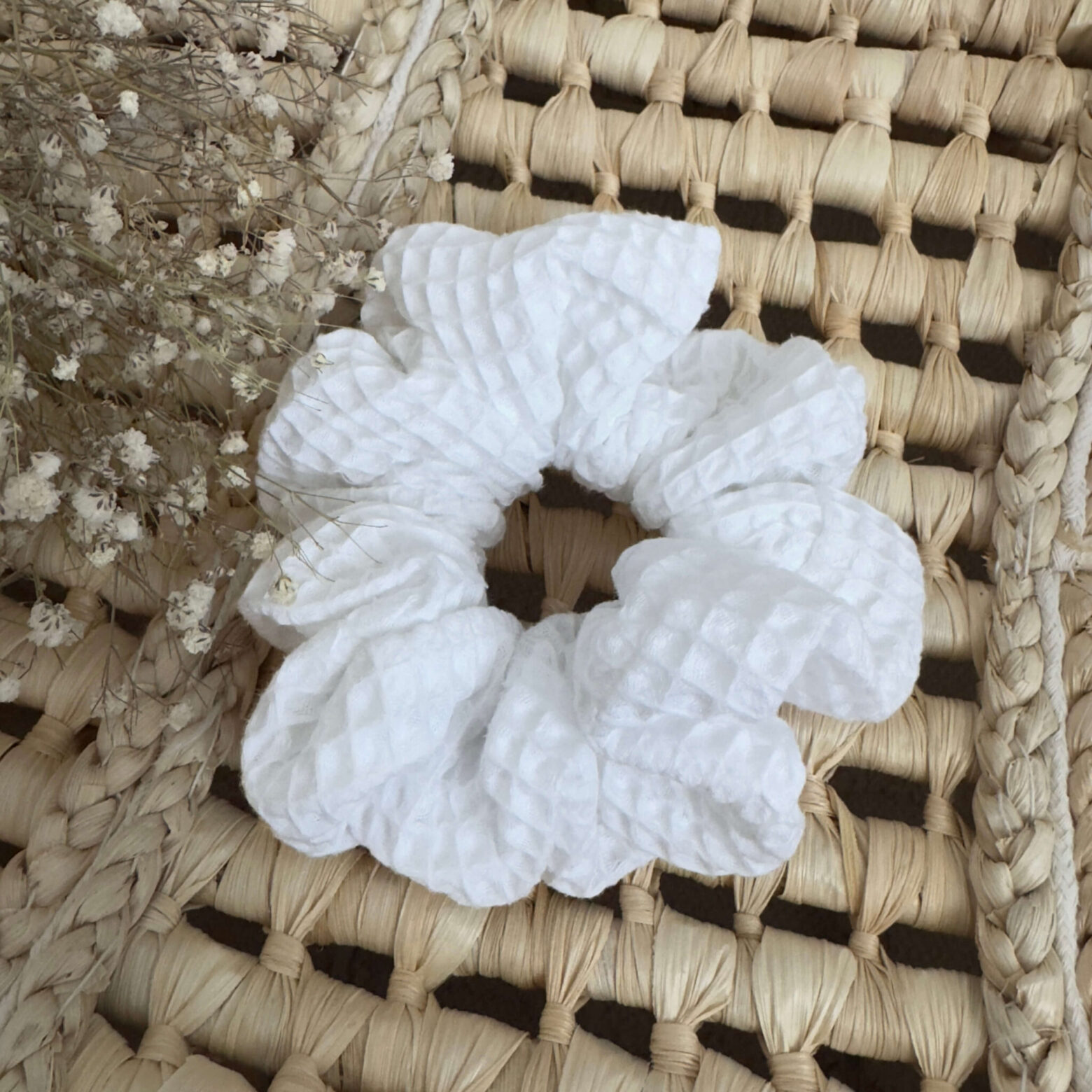Nasza scrunchie została stworzona z myślą o delikatnych włosach – jest miękka, elastyczna i pozbawiona metalowych elementów, dzięki czemu nie powoduje ciągnięcia ani wyrywania. Doskonale komponuje się z naszymi szlafrokami, turbanami i opaskami, tworząc spójny i piękny zestaw.