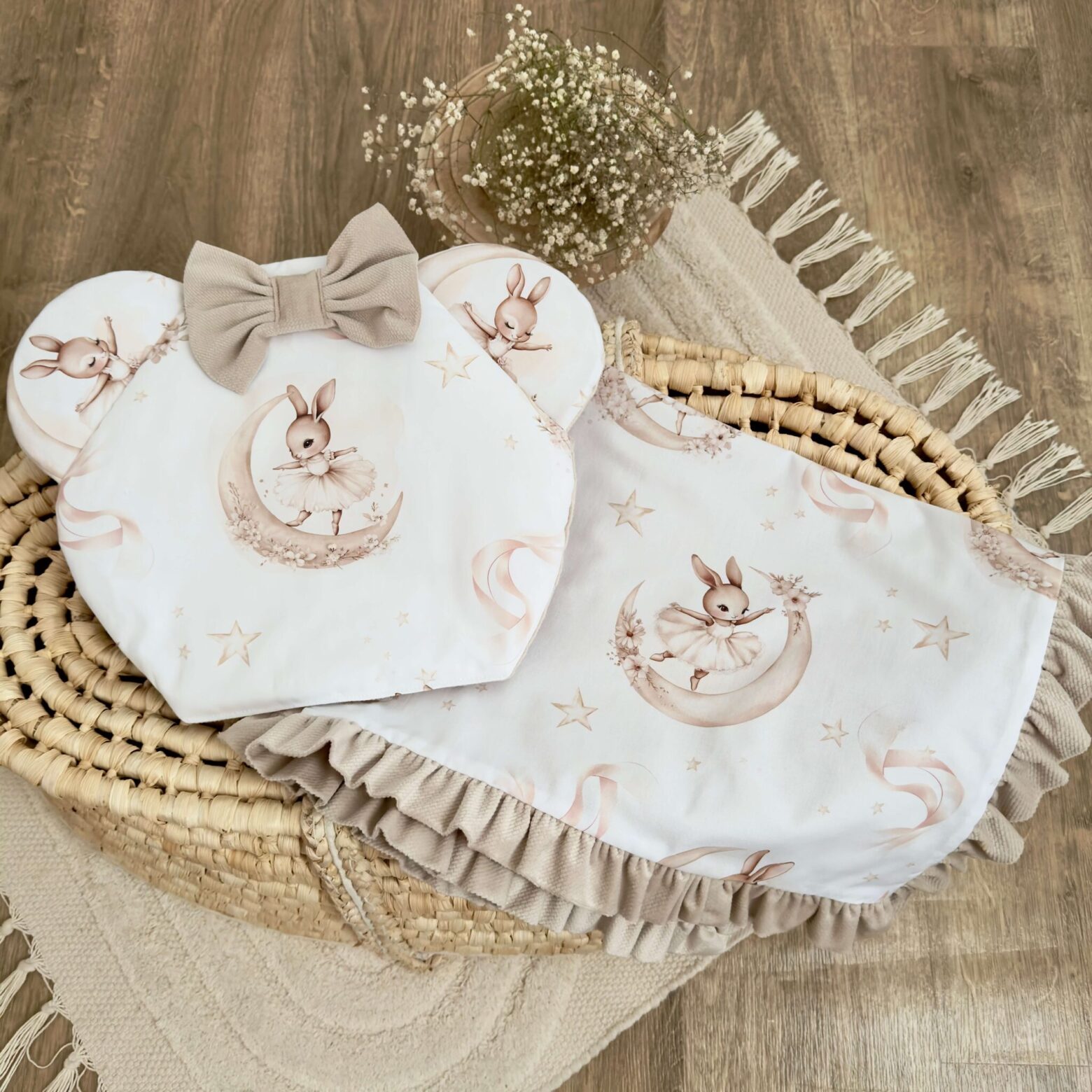 Kołderka + poduszka z wypełnieniem. Kolekcja BALETNICA NA KSIĘŻYCU + VELVET beż