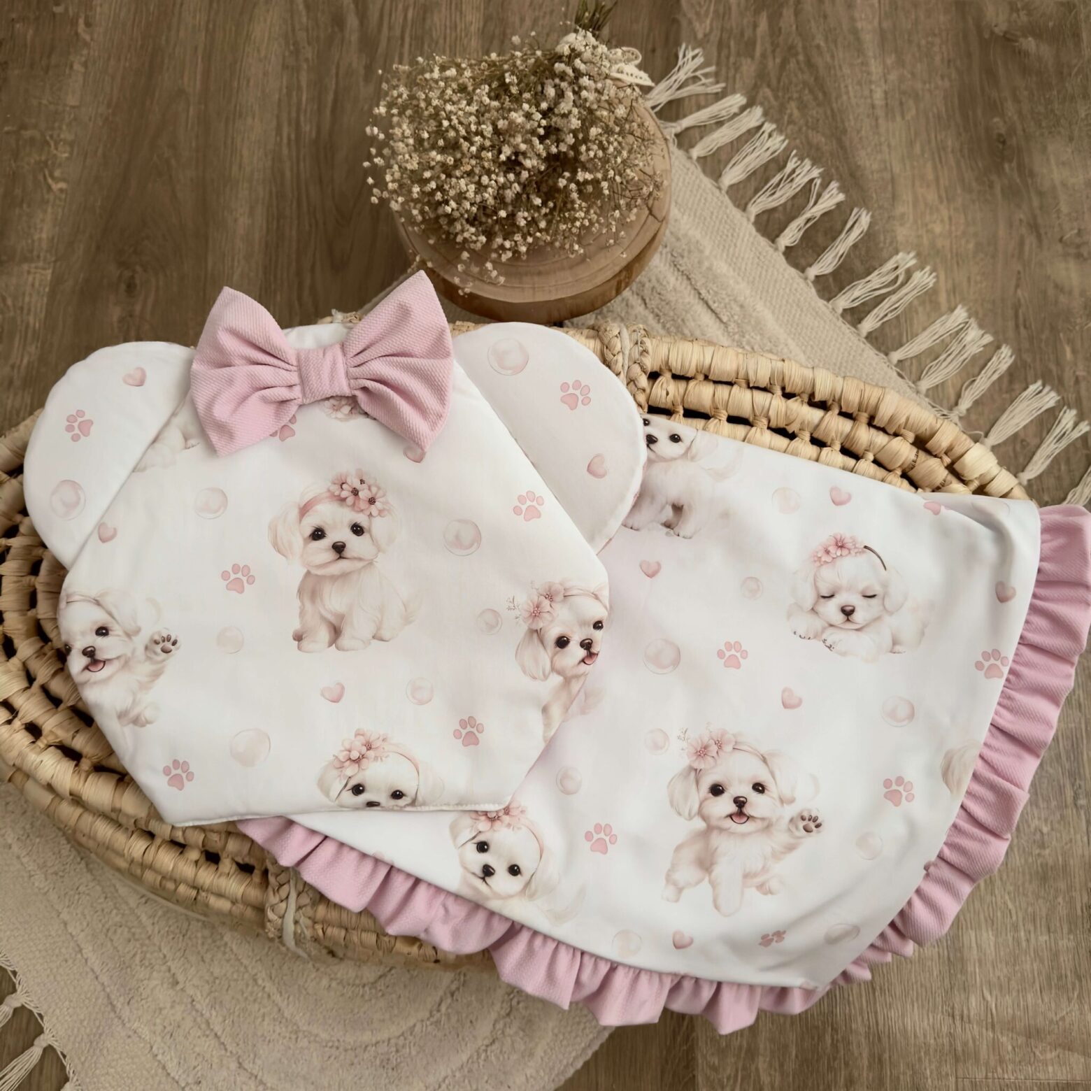 Kocyk + poduszka. Kolekcja MALTAŃCZYKI + VELVET róż Darmowa dostawa od 500 zł! Kocyk + poduszka. Kolekcja MALTAŃCZYKI + VELVET róż