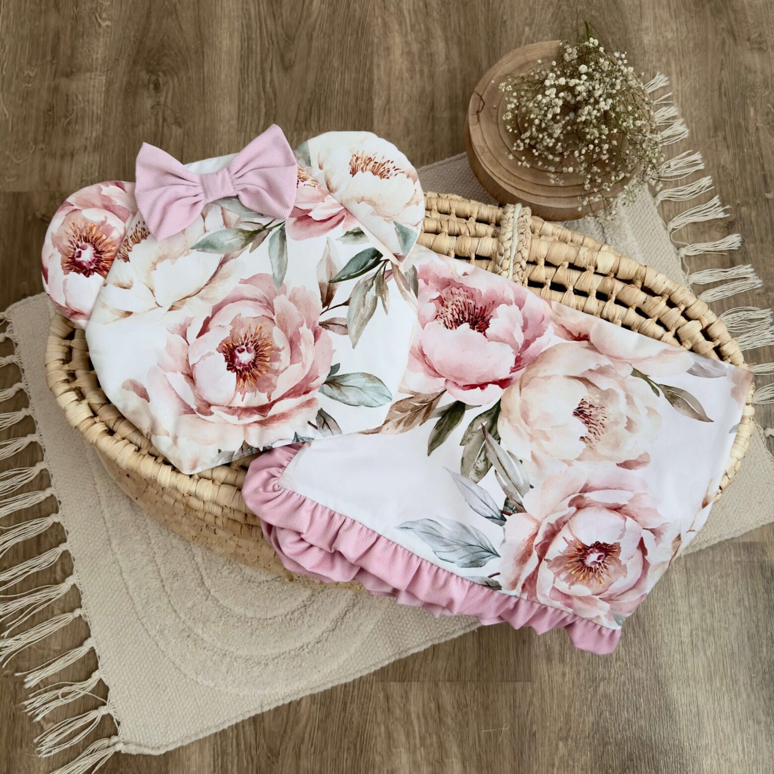Kocyk + poduszka. Kolekcja PASTELOWE PIWONIE + VELVET róż
