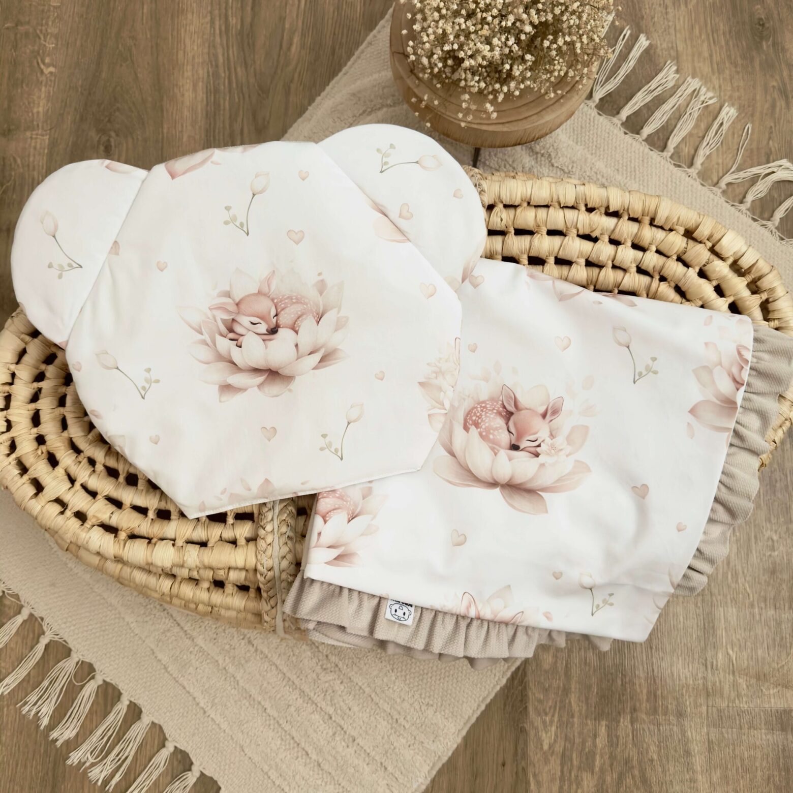 Kocyk + poduszka. Kolekcja ŚPIĄCE SARENKI + VELVET beż