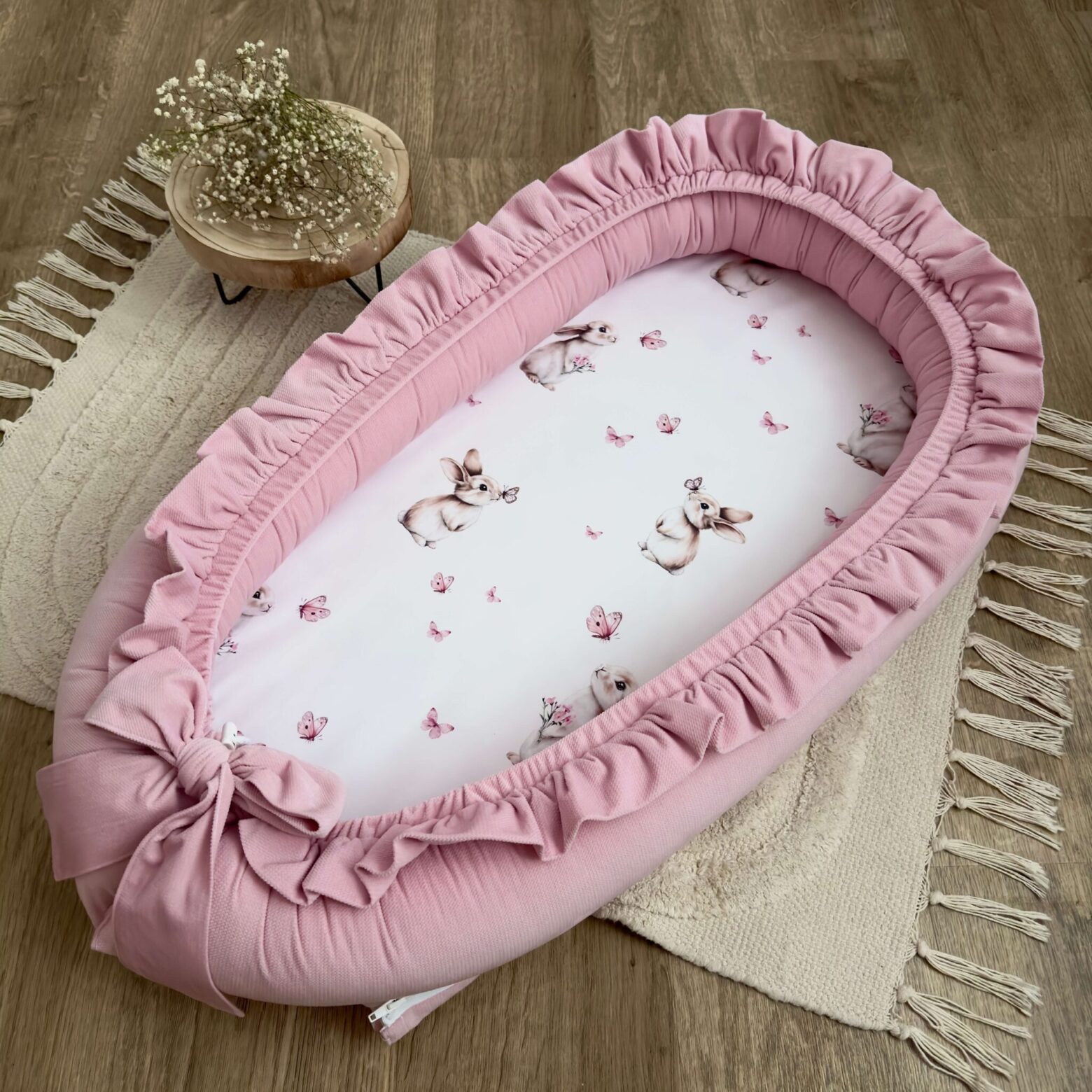 Kokon niemowlęcy – wykonany ręcznie, z najwyższej jakości materiałów z certyfikatami Oeko-Tex Standard 100. Doskonały do: