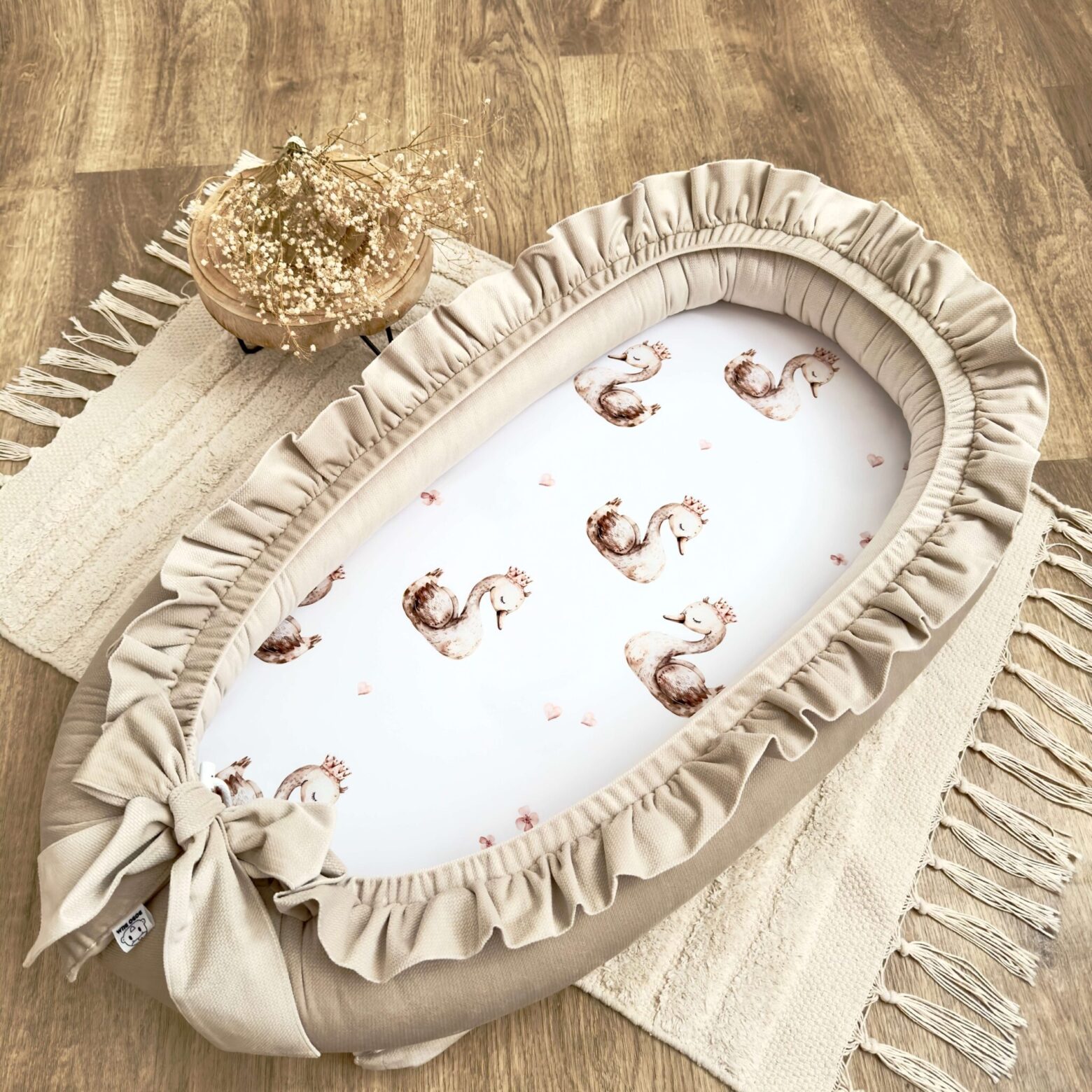 Kokon niemowlęcy z kolekcji ŁABĘDZIE + VELVET beż