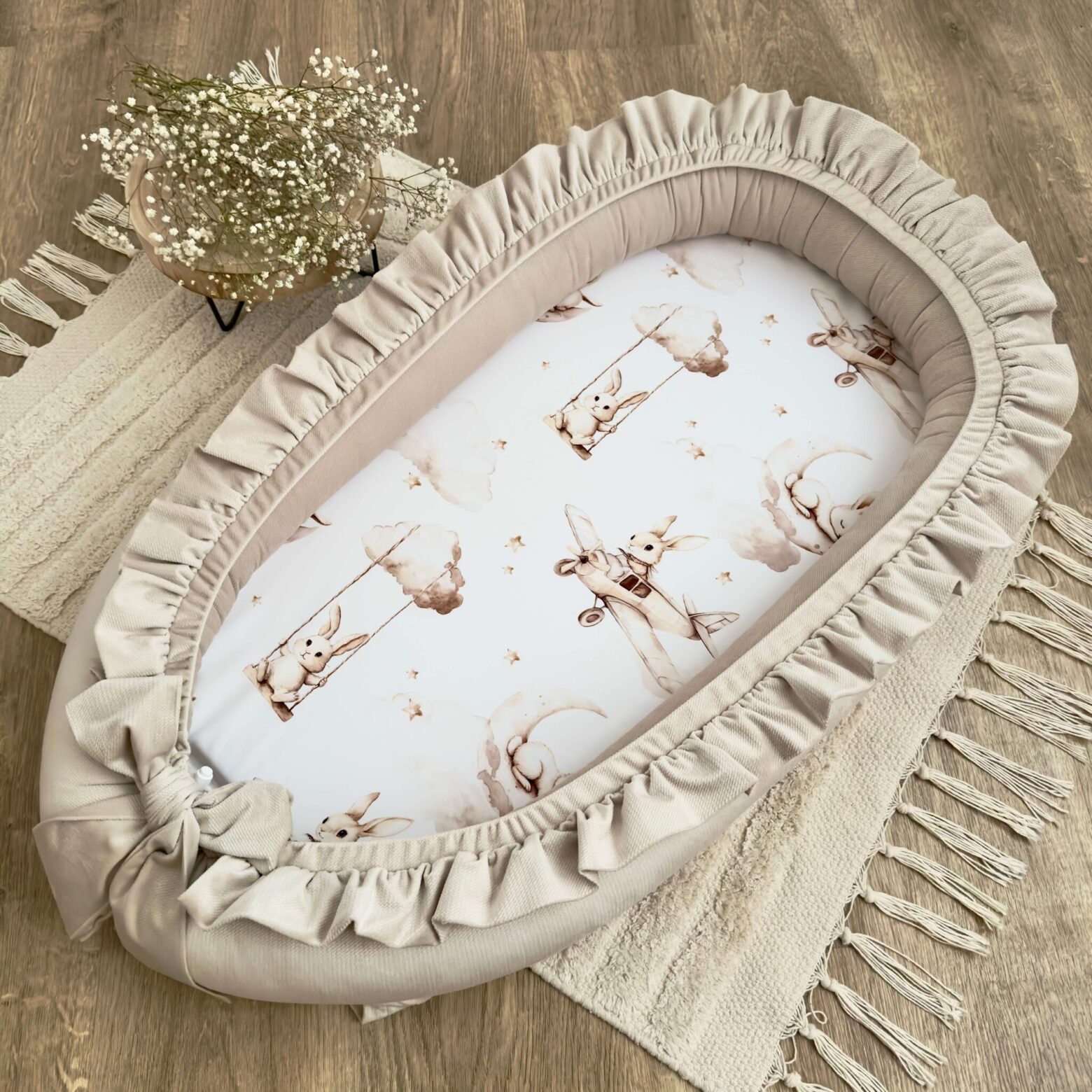 Kokon niemowlęcy – wykonany ręcznie, z najwyższej jakości materiałów z certyfikatami Oeko-Tex Standard 100. Doskonały do: