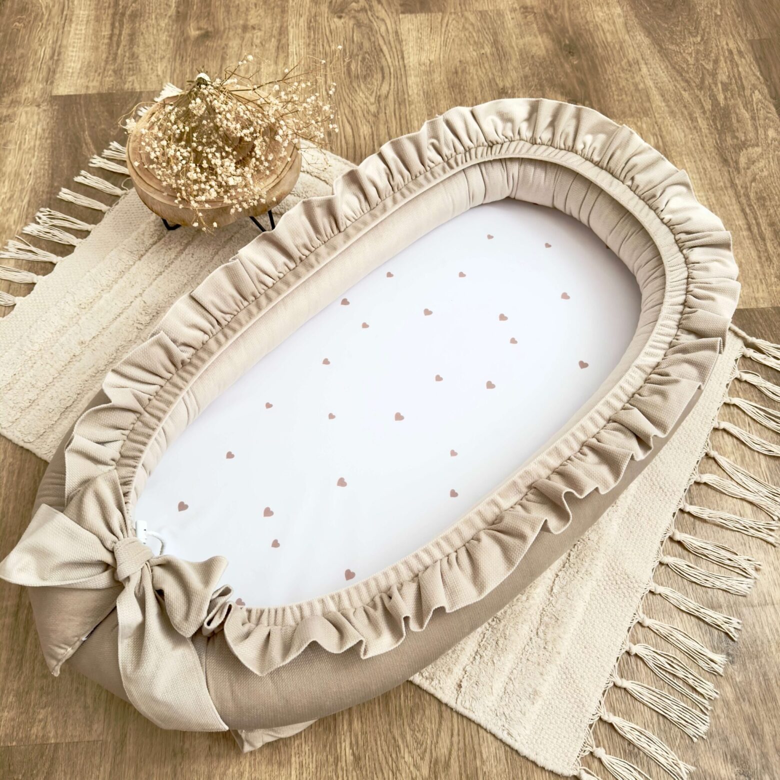Kokon niemowlęcy – wykonany ręcznie, z najwyższej jakości materiałów z certyfikatami Oeko-Tex Standard 100. Doskonały do: