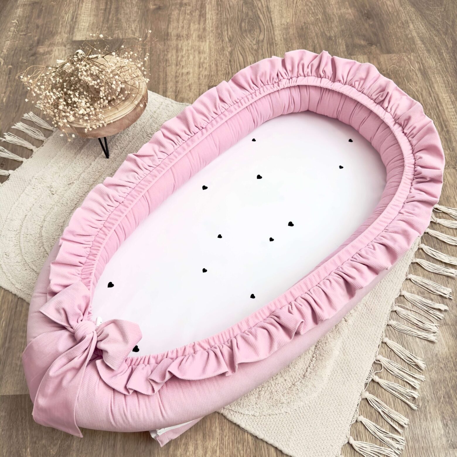 Kokon niemowlęcy – wykonany ręcznie, z najwyższej jakości materiałów z certyfikatami Oeko-Tex Standard 100. Doskonały do: