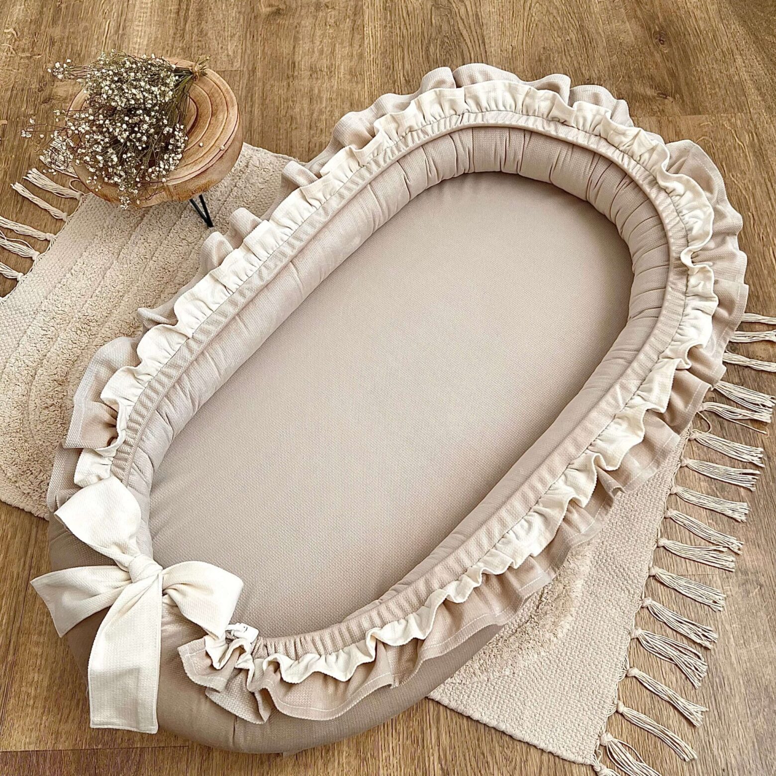 Kokon niemowlęcy – wykonany ręcznie, z najwyższej jakości materiałów z certyfikatami Oeko-Tex Standard 100. Doskonały do: