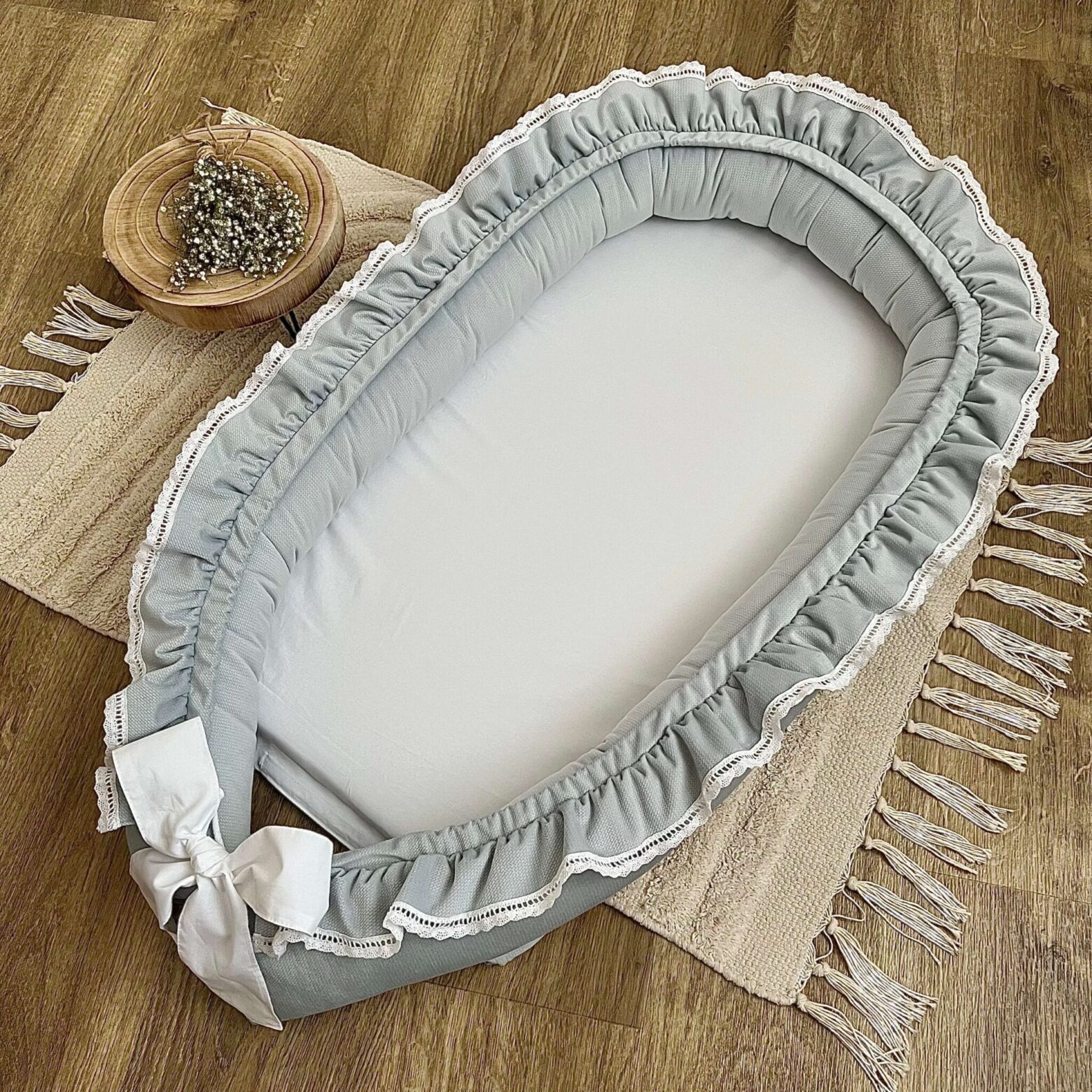 Kokon niemowlęcy – wykonany ręcznie, z najwyższej jakości materiałów z certyfikatami Oeko-Tex Standard 100. Doskonały do: