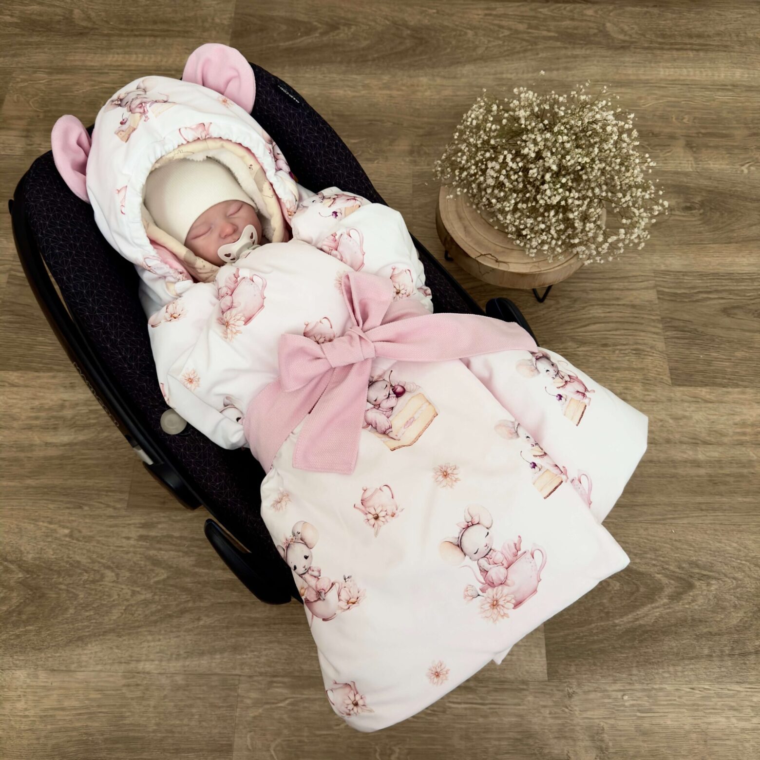 Otulacz do fotelika to praktyczne i bardzo wygodne rozwiązanie w podróży oraz na spacerach z niemowlakiem. Nie musisz już ubierać maluszka w grube, puchowe kombinezony. Otulacz dostosowany jest do 3 lub 5-cio punktowych pasów bezpieczeństwa. Wykonany jest z najwyższej jakości bawełny premium oraz mięciutkiego velvetu. W środku wypełniony antyalergiczną włókniną silikonową, która jest przeszywana wraz z materiałem dzięki temu nie przemieszcza się podczas używania go i prania.