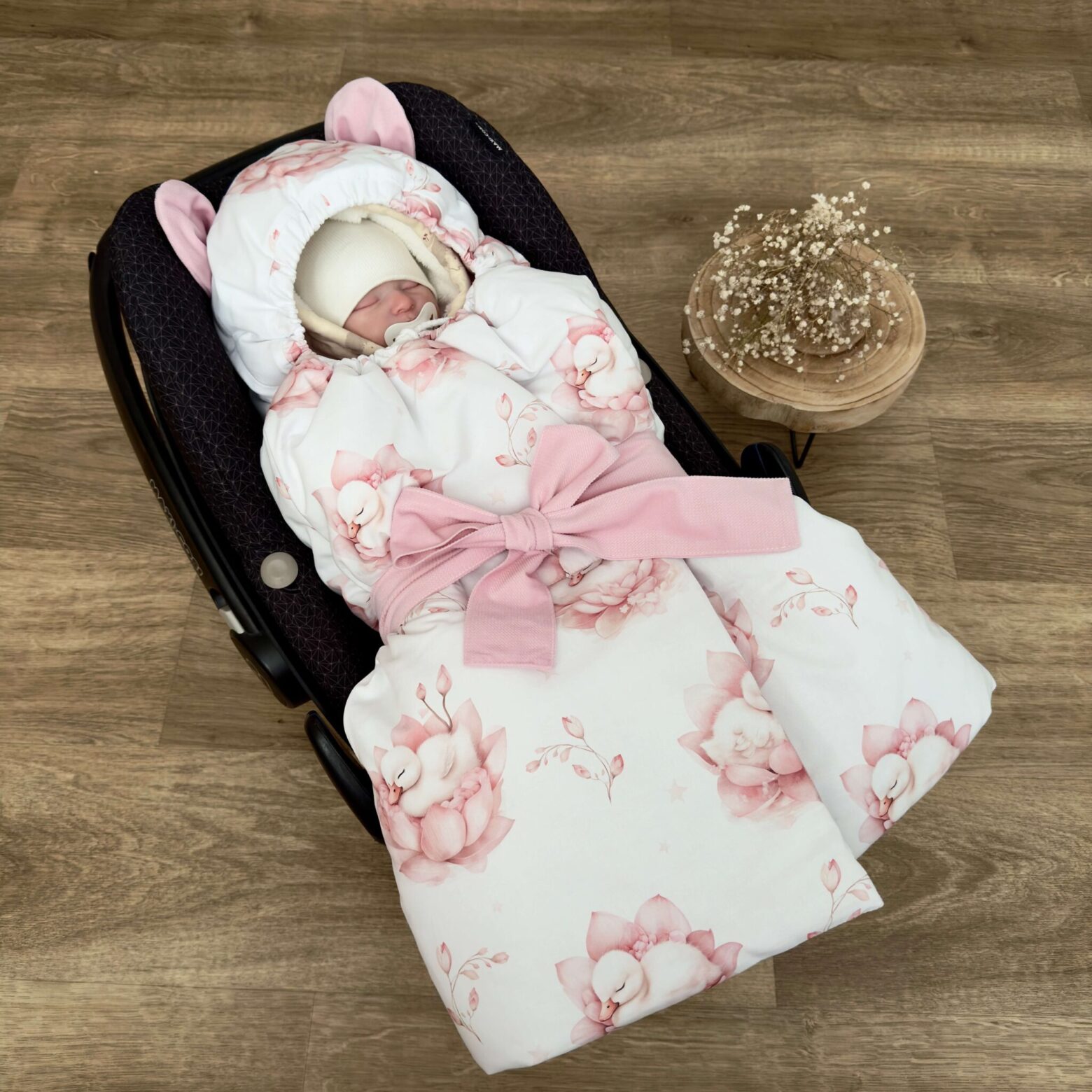Otulacz do fotelika to praktyczne i bardzo wygodne rozwiązanie w podróży oraz na spacerach z niemowlakiem. Nie musisz już ubierać maluszka w grube, puchowe kombinezony. Otulacz dostosowany jest do 3 lub 5-cio punktowych pasów bezpieczeństwa. Wykonany jest z najwyższej jakości bawełny premium oraz mięciutkiego velvetu. W środku wypełniony antyalergiczną włókniną silikonową, która jest przeszywana wraz z materiałem dzięki temu nie przemieszcza się podczas używania go i prania.