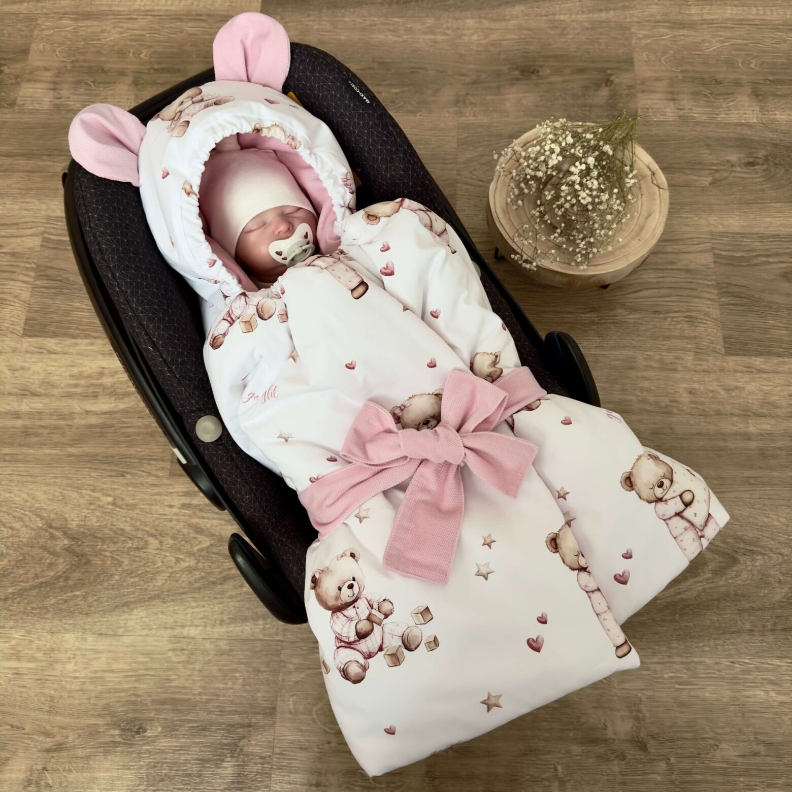 Kokon niemowlęcy z kolekcji ŚPIĄCE MISIE + VELVET róż