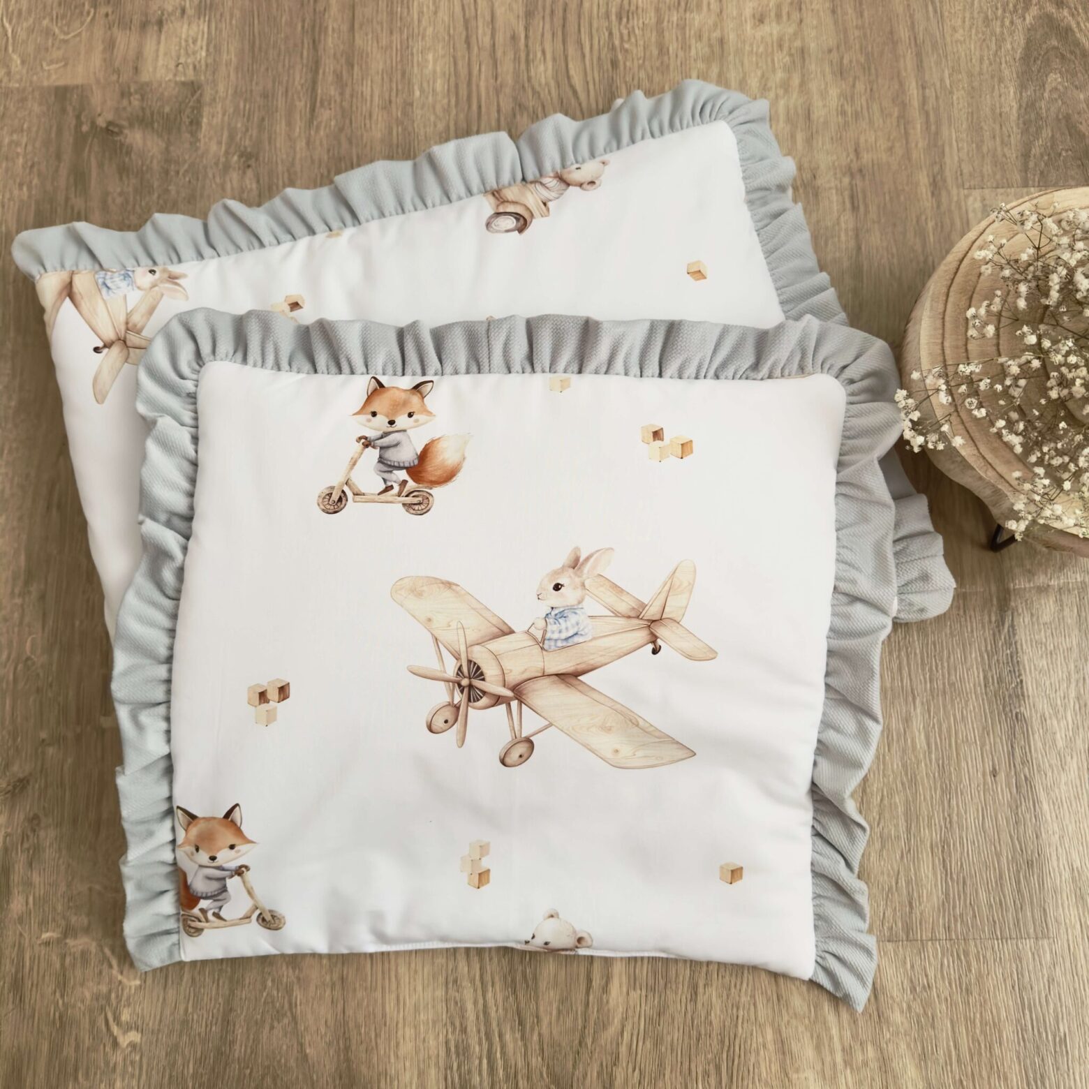 Poszewka z kolekcji DREWNIANE POJAZDY + VELVET szary