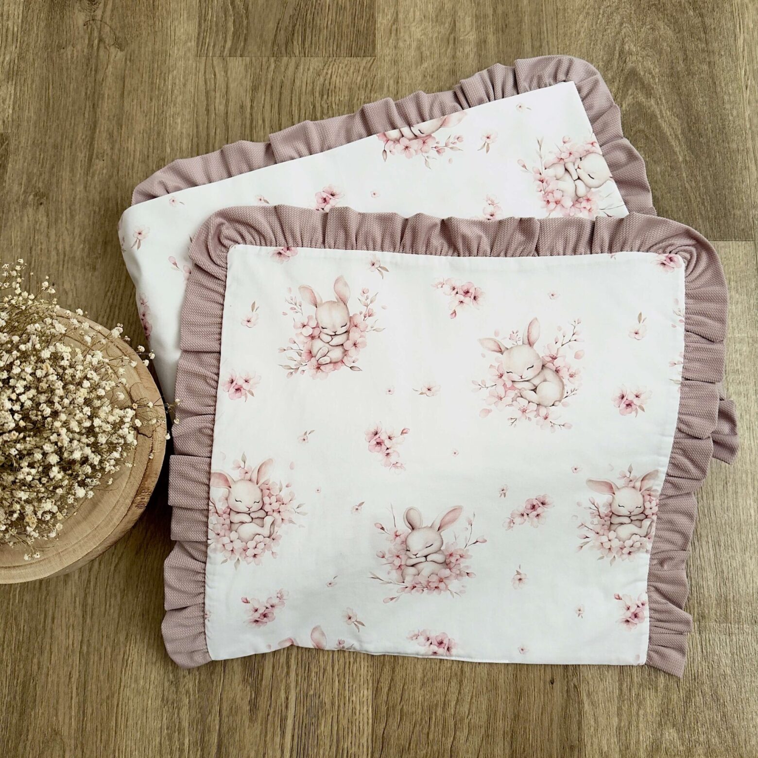 Kołderka + poduszka z wypełnieniem. Kolekcja DRZEMKA KRÓLICZKA + VELVET brudny róż – 75×100 cm + poduszka 40×50 cm