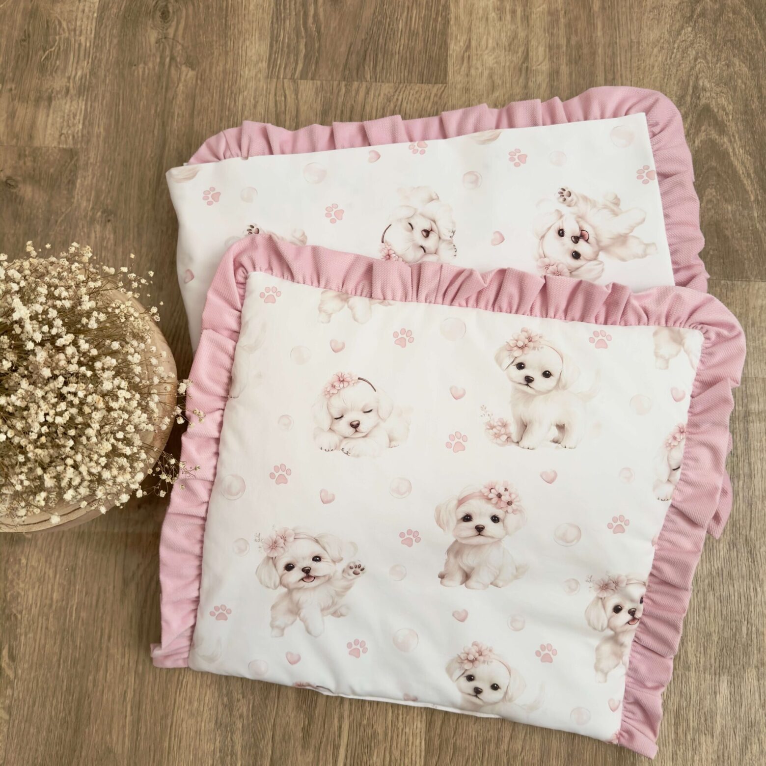 Kocyk + poduszka. Kolekcja MALTAŃCZYKI + VELVET róż