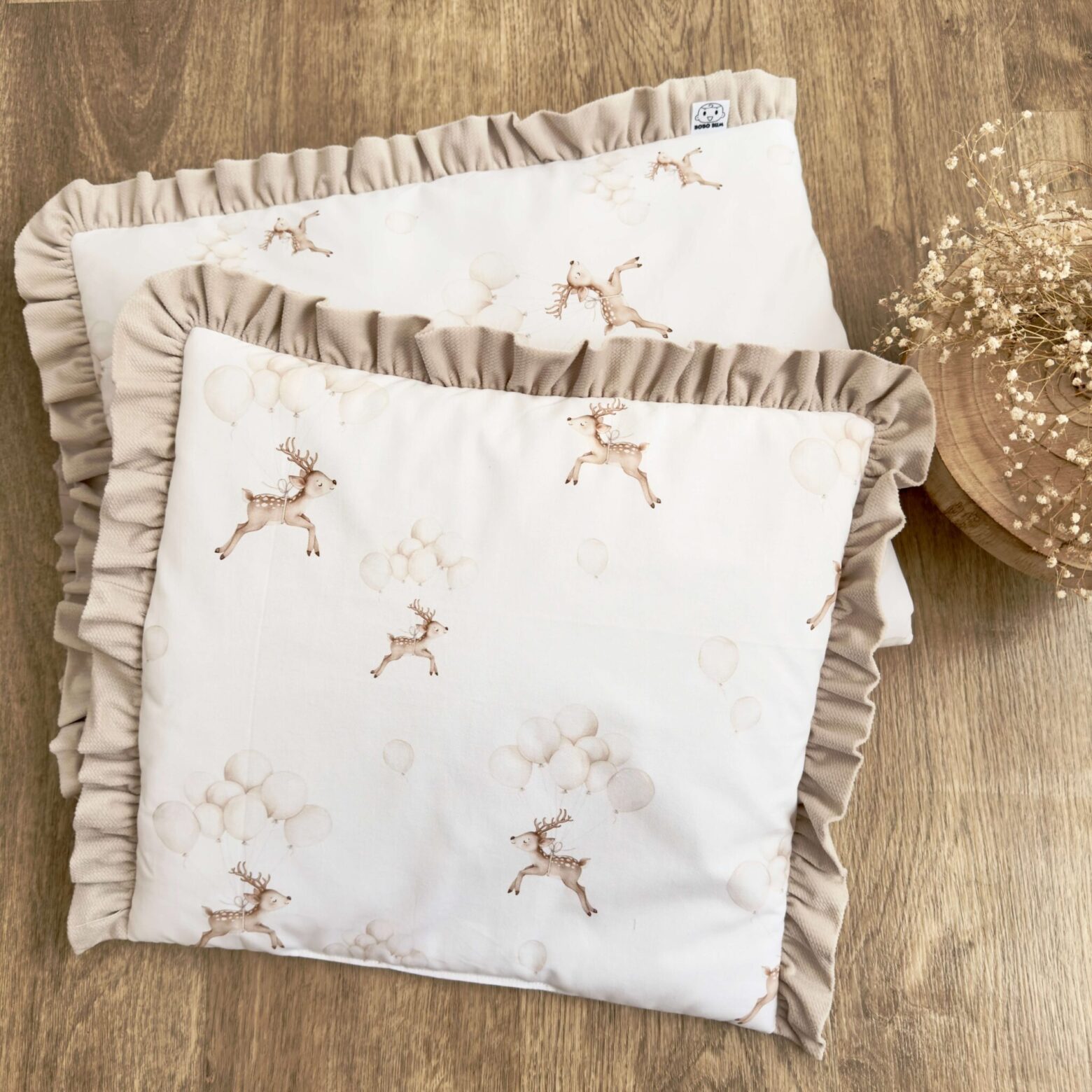Kołderka + poduszka z wypełnieniem. Kolekcja SARENKA Z BALONEM + VELVET beż