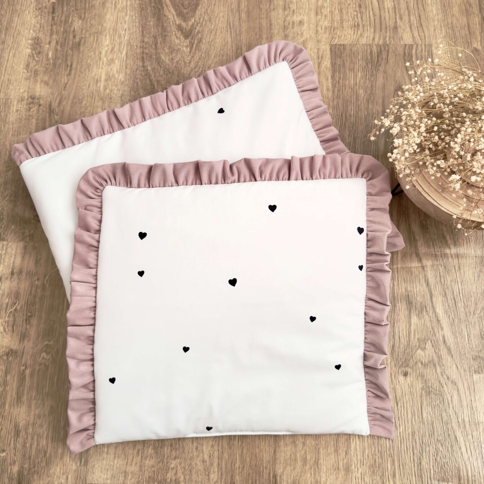Kocyk + poduszka. Kolekcja SERDUSZKA + VELVET brudny róż