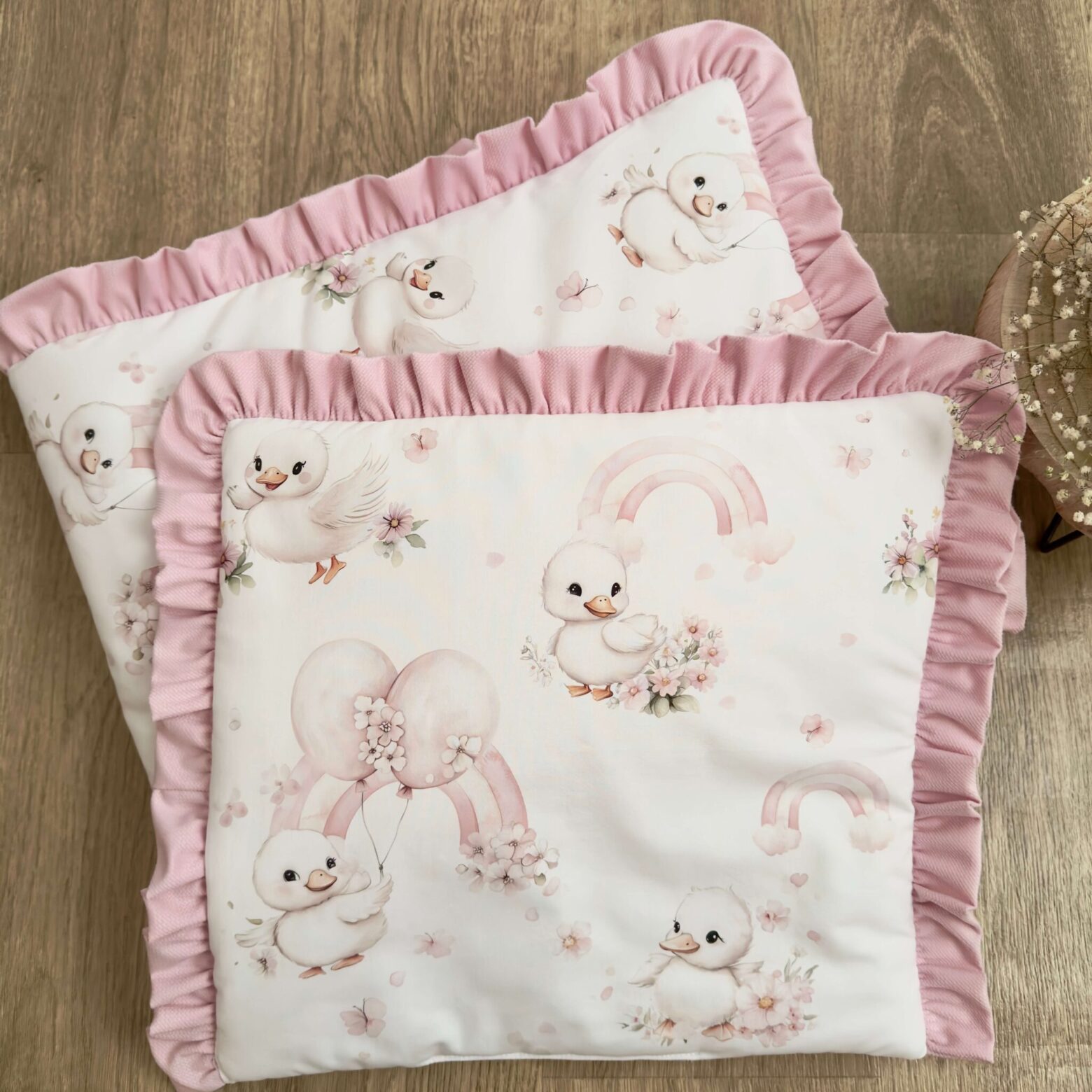 Kołderka + poduszka z wypełnieniem. Kolekcja SŁODKA KACZUSZKA + VELVET róż