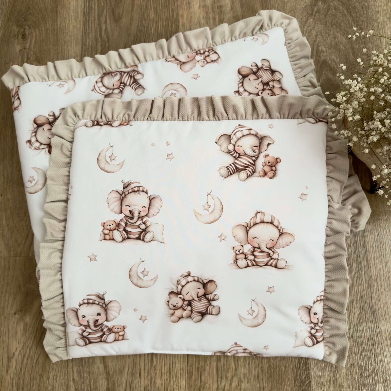 Kocyk + poduszka. Kolekcja SŁONIKI + VELVET beż