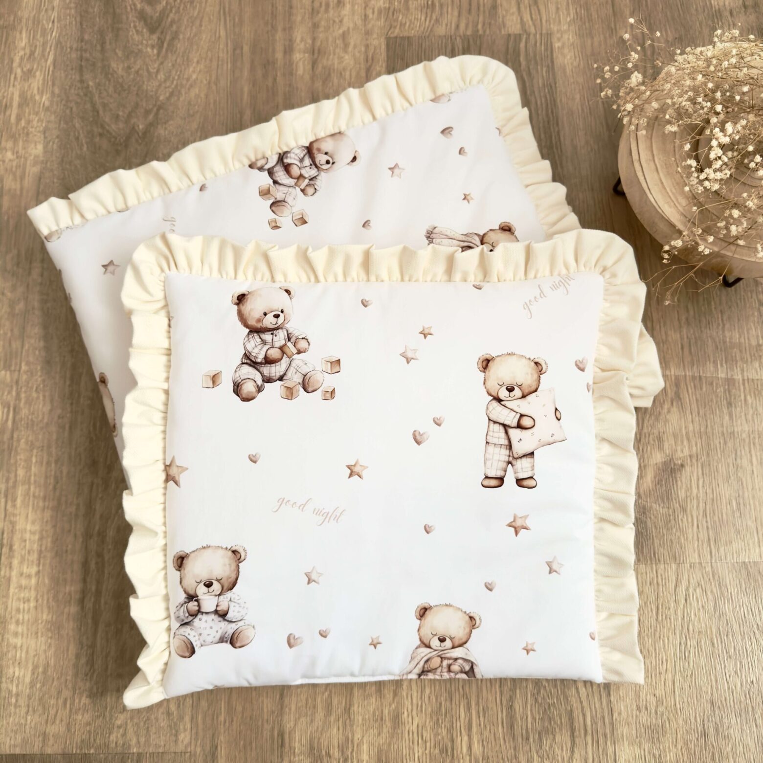 Kołderka + poduszka z wypełnieniem. Kolekcja ŚPIĄCE MISIE + VELVET krem