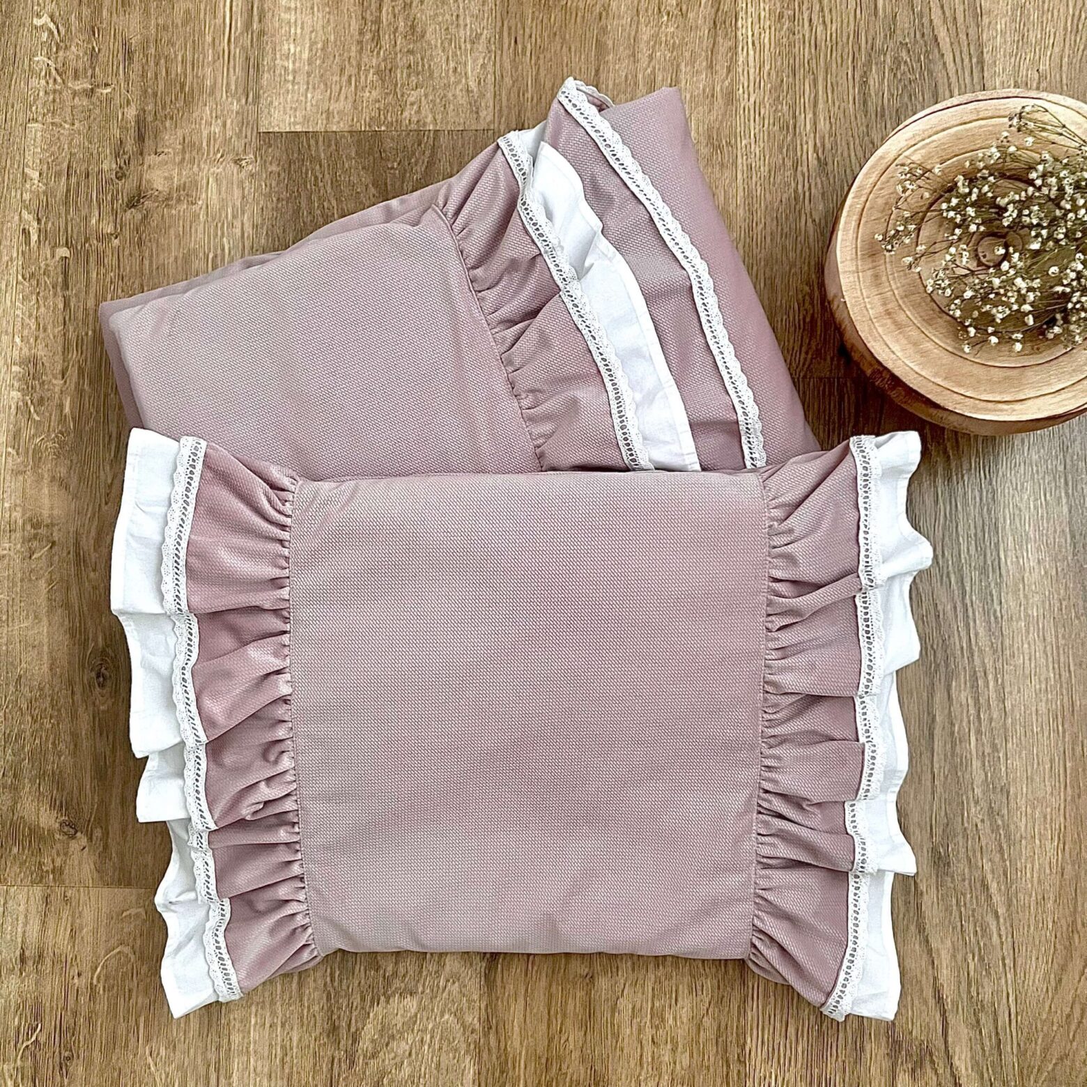 Kocyk + poduszka . Kolekcja SWEET BABY + VELVET brudny róż