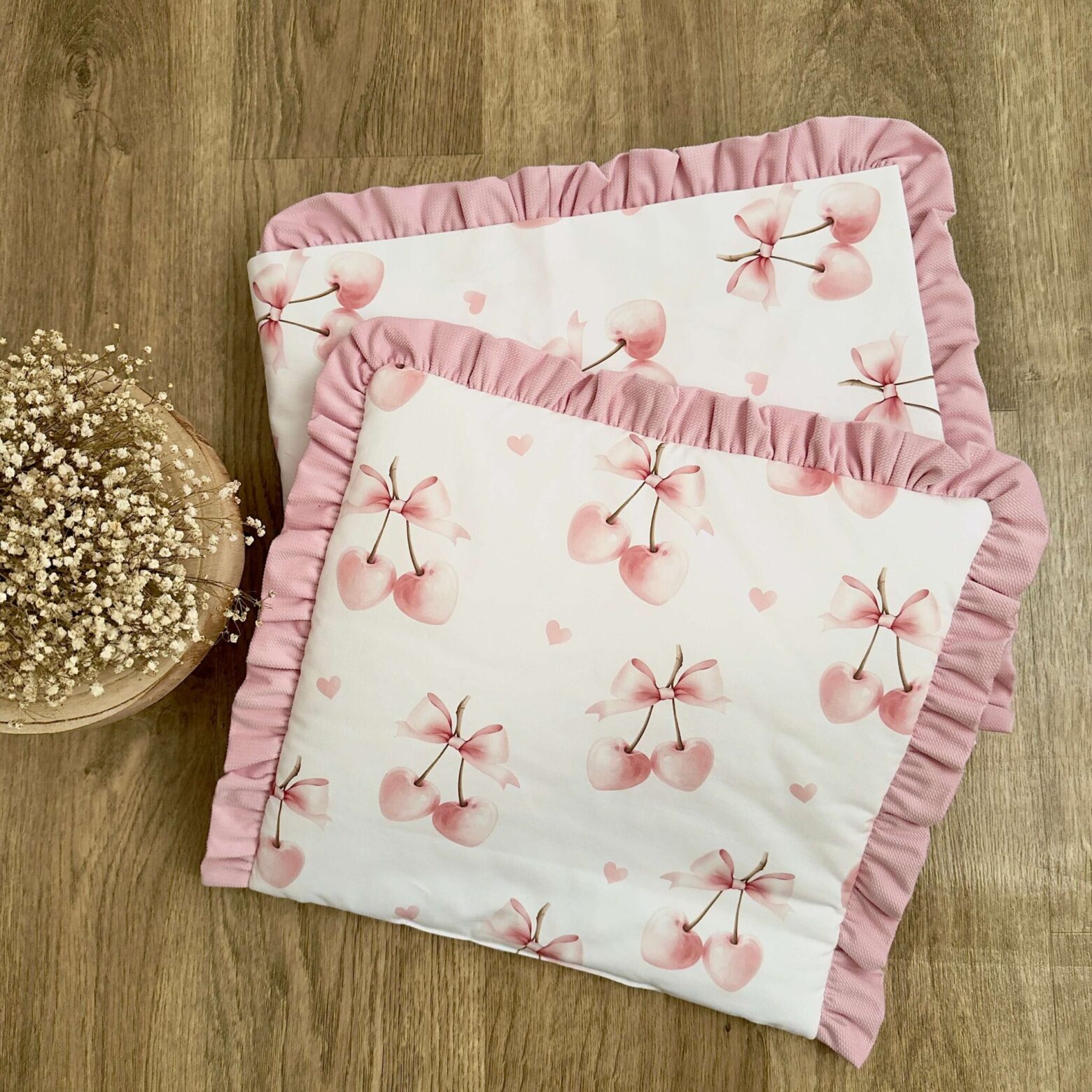 Kołderka + poduszka z wypełnieniem. Kolekcja WISIENKI + VELVET róż