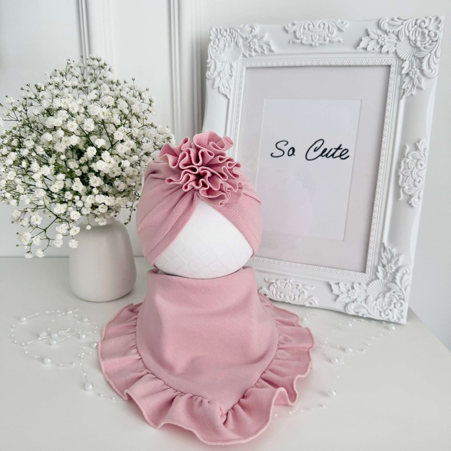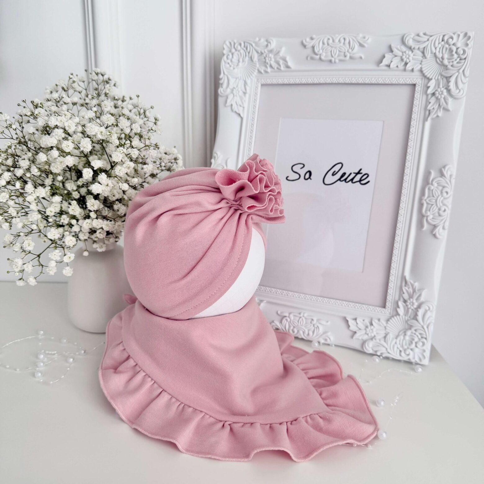 Turban z falbanką to prawdziwy must-have w dziecięcej garderobie. Zachwyca swoim urokiem i subtelną elegancją, a jednocześnie zapewnia maksymalny komfort noszenia. Dzięki elastycznemu materiałowi idealnie dopasowuje się do główki dziecka, nie uciska i pozostaje na miejscu – dlatego dziewczynki chętnie wybierają go zamiast tradycyjnych czapek.
