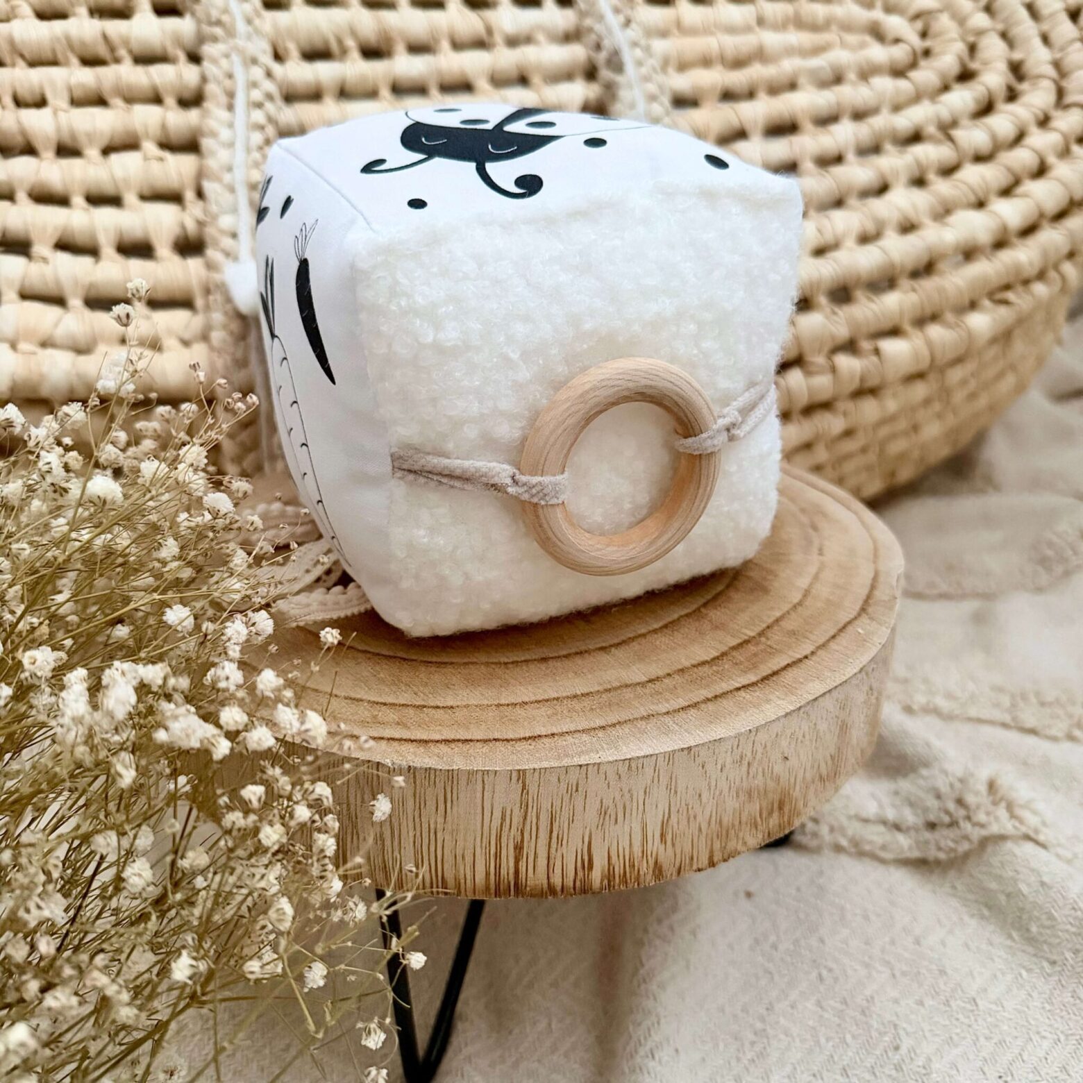 Nasza kostka kontrastowa z metkami i grzechotką to idealna zabawka sensoryczna dla niemowląt już od pierwszych tygodni życia. Połączenie kontrastowych kolorów oraz delikatnego dźwięku grzechotki stymuluje zmysły dziecka i wspiera jego prawidłowy rozwój.