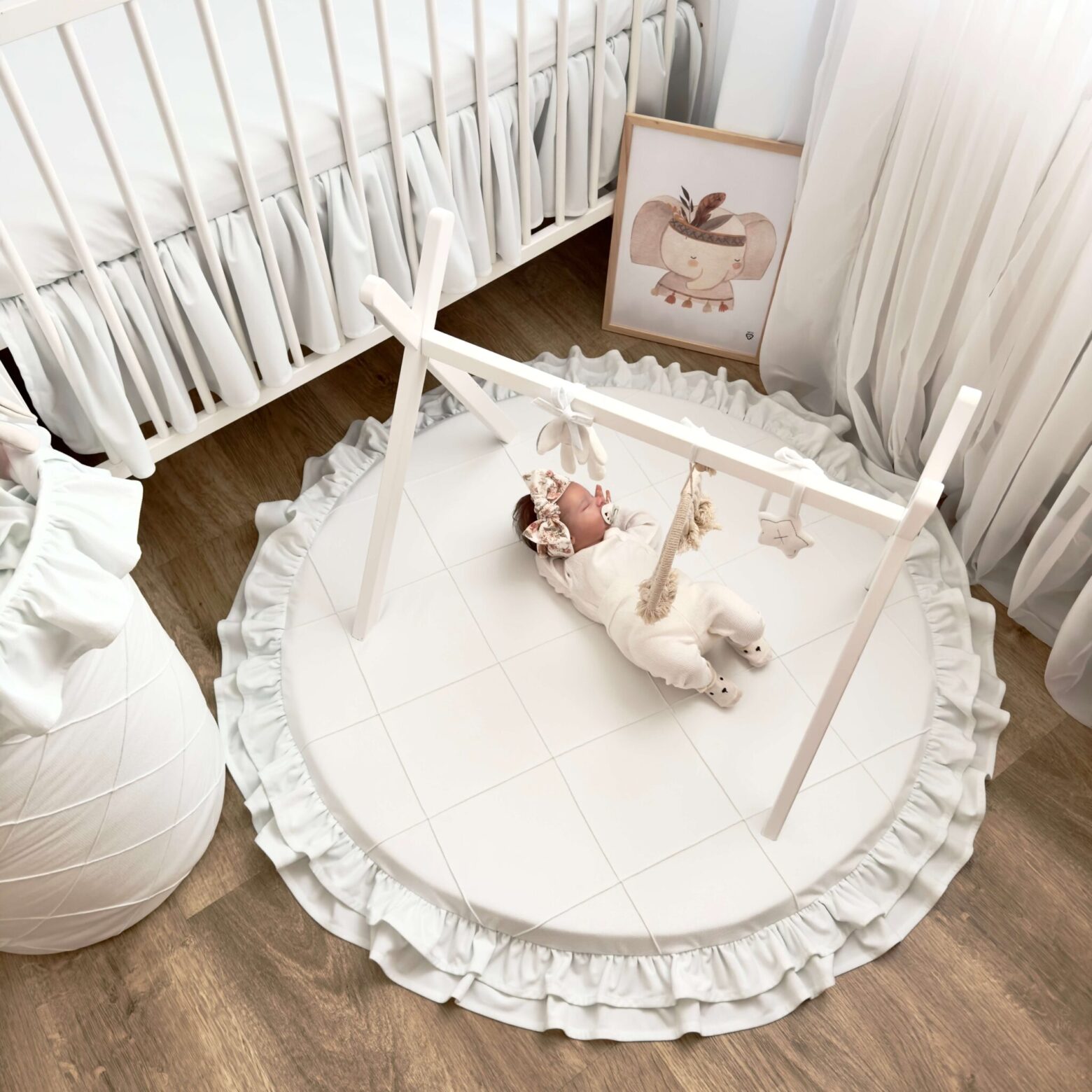 Poznaj naszą innowacyjną matę, stworzoną z certyfikowanych materiałów bezpiecznych dla dzieci. To idealne miejsce dla Maluszka od pierwszych dni życia – doskonała do nauki leżenia na brzuszku, pierwszych zabaw czy jako elegancka mata pod baldachim.