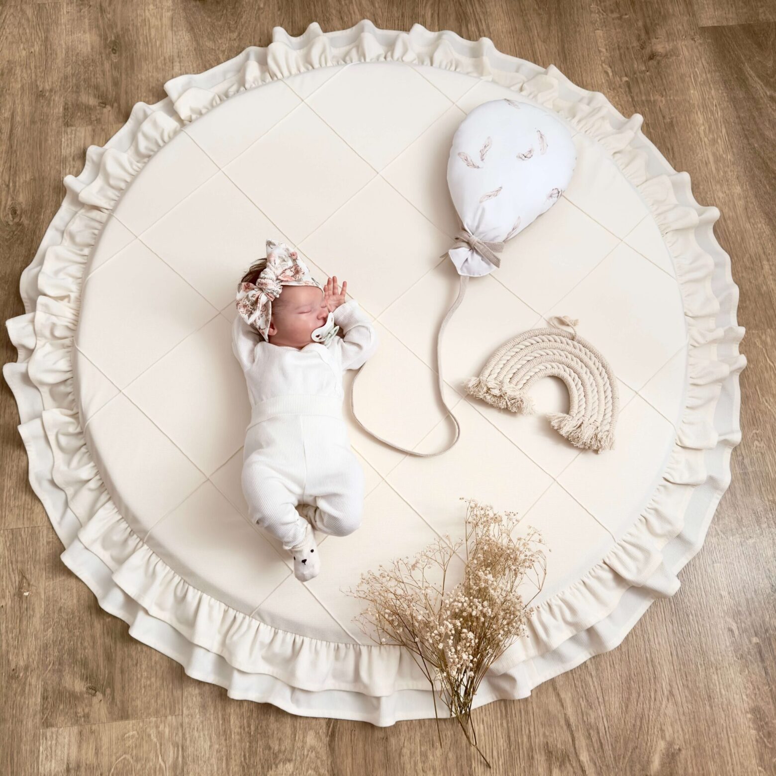 Poznaj naszą innowacyjną matę, stworzoną z certyfikowanych materiałów bezpiecznych dla dzieci. To idealne miejsce dla Maluszka od pierwszych dni życia – doskonała do nauki leżenia na brzuszku, pierwszych zabaw czy jako elegancka mata pod baldachim.