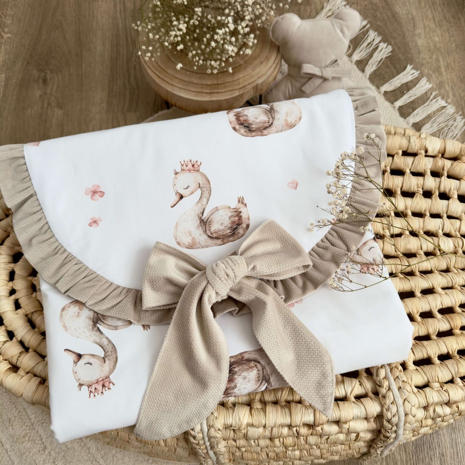 Becik niemowlęcy z kolekcji ŁĄBĘDZIE + VELVET beż