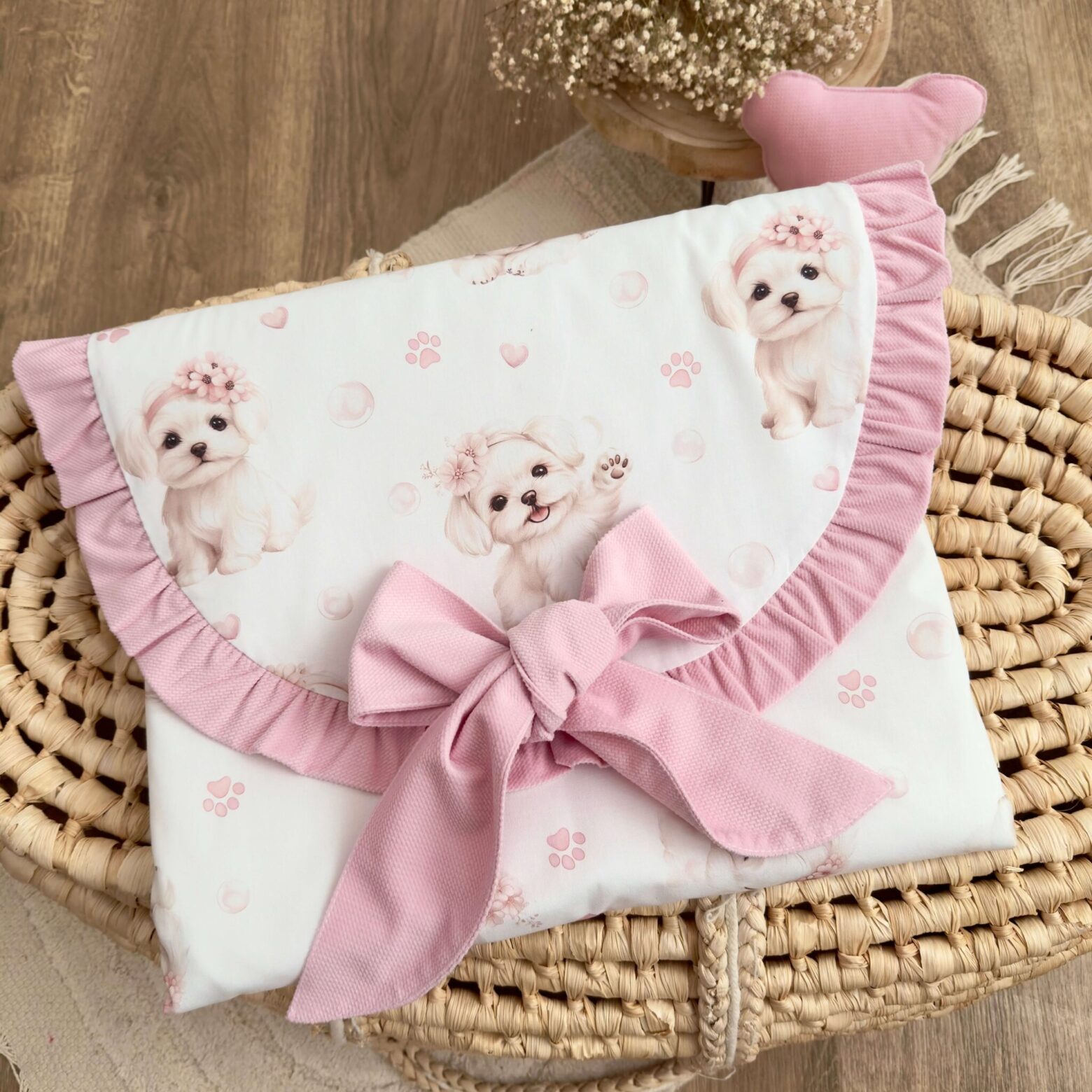 Kocyk + poduszka. Kolekcja MALTAŃCZYKI + VELVET róż