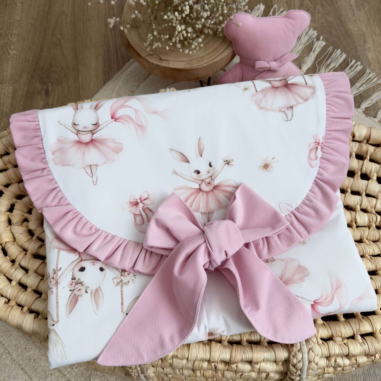 Kocyk + poduszka. Kolekcja SŁODKA BALETNICA + VELVET róż