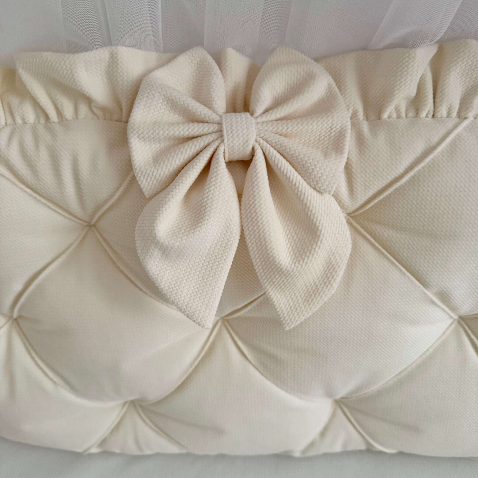 Ochraniacz pikowany- wykonany ręcznie, z najwyższej jakości materiałów z certyfikatami Oeko-Tex Standard 100. Ochraniacz ma za zadanie zapewnić maleństwu bezpieczeństwo podczas snu, a także pełnić funkcję wyjątkowego zdobienia łóżeczka oraz całego pokoiku.