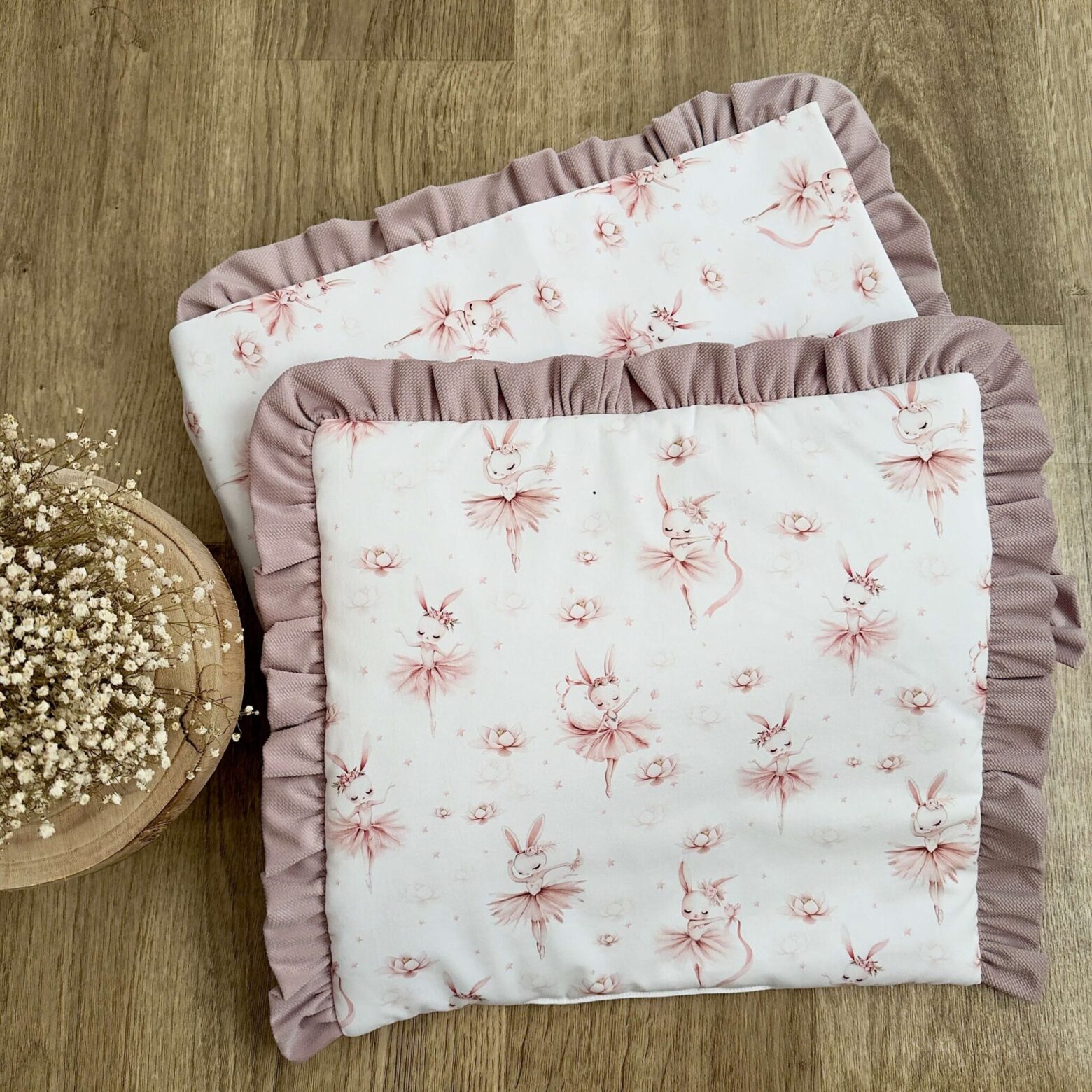Kołderka + poduszka z wypełnieniem. Kolekcja BALETNICA + VELVET brudny róż