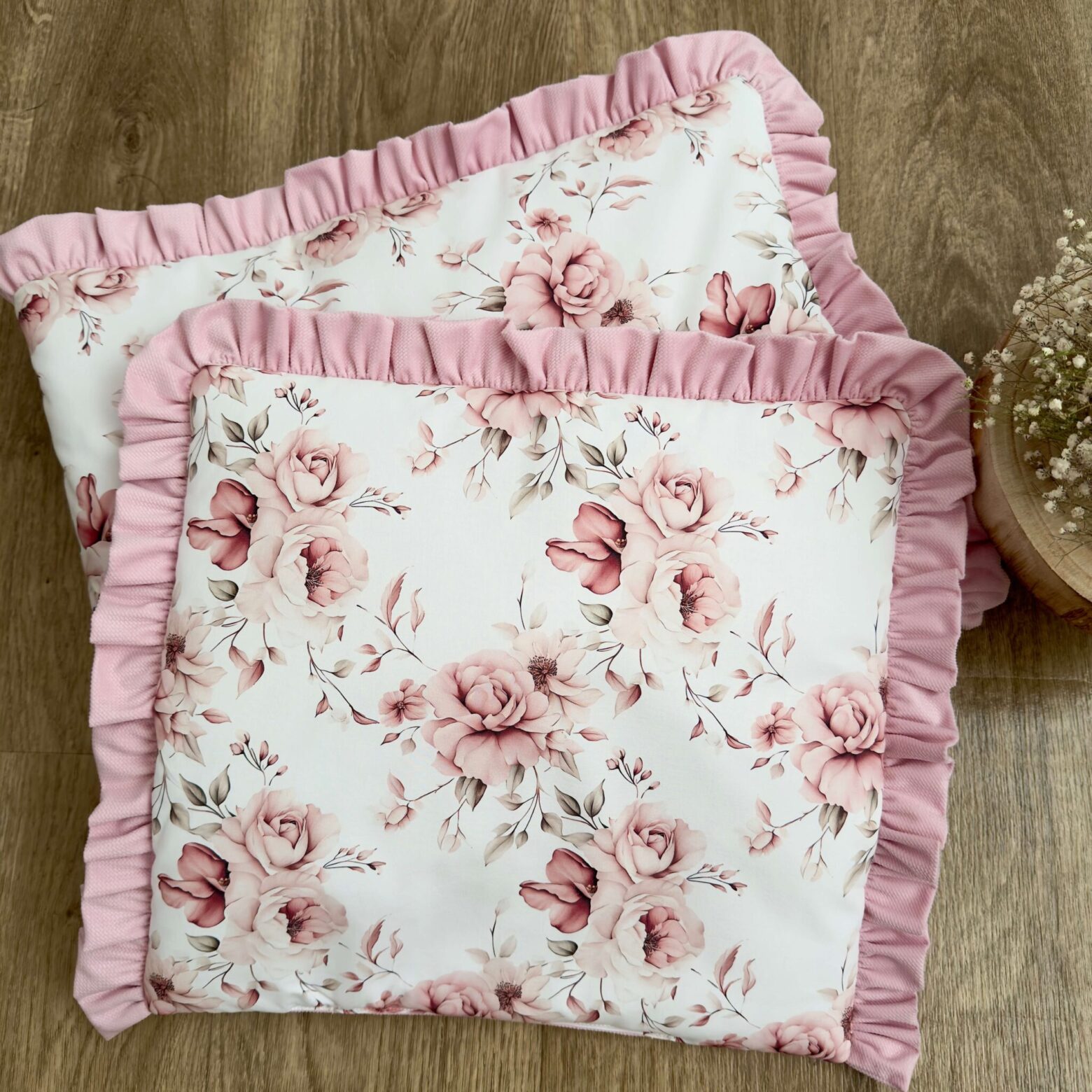 Kołderka + poduszka z wypełnieniem. Kolekcja KWIATOWY OGRÓD + VELVET róż