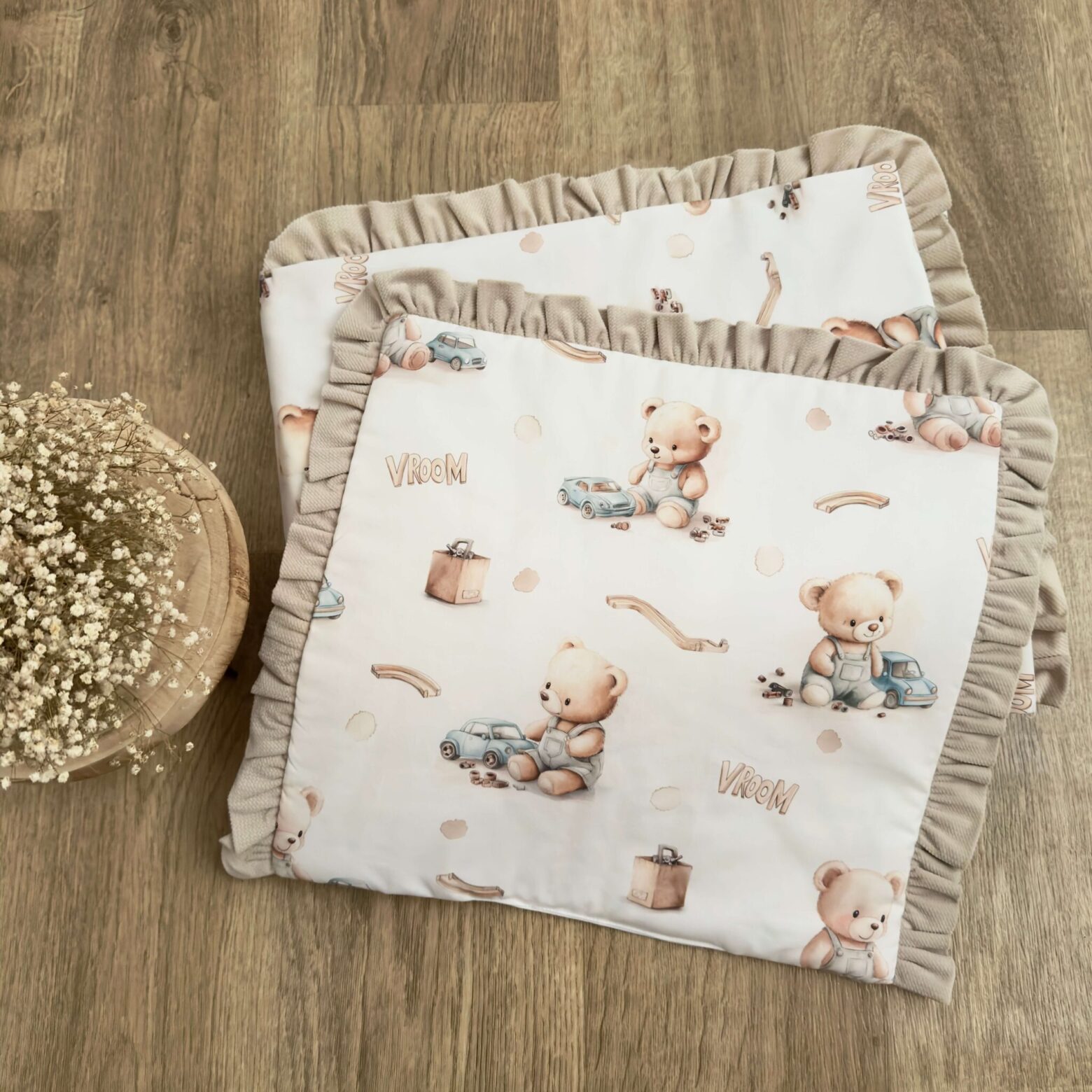 Kołderka do auta. Kolekcja MIŚ MECHANIK + VELVET beż