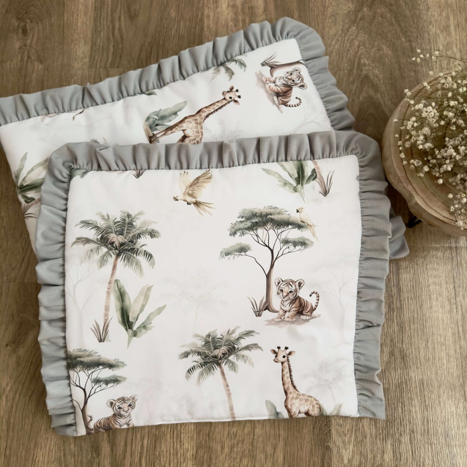 Kołderka + poduszka z wypełnieniem. Kolekcja SAFARI + VELVET szary