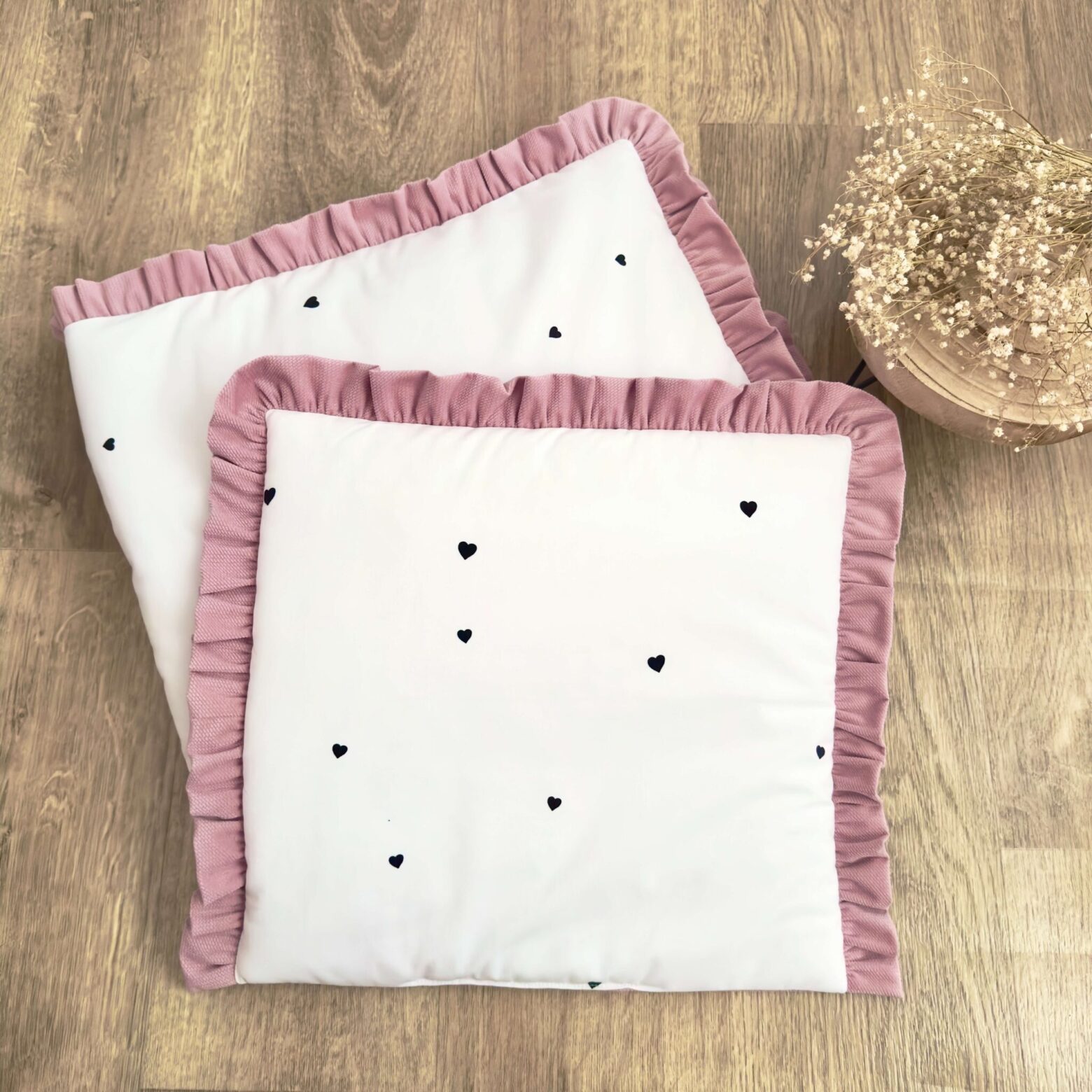 Kołderka + poduszka z wypełnieniem. Kolekcja SERDUSZKA + VELVET smoky rose