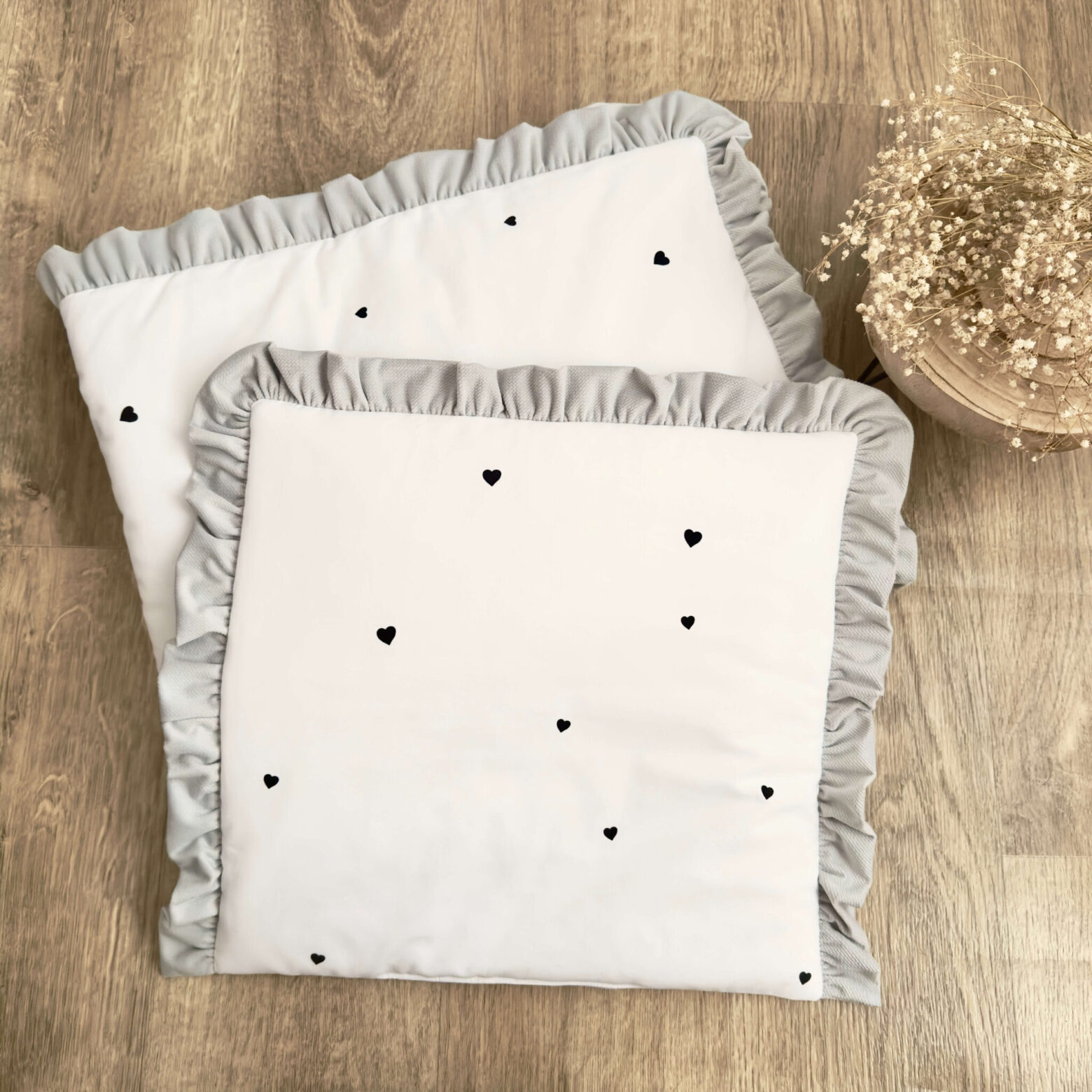 Kołderka + poduszka z wypełnieniem. Kolekcja SERDUSZKA + VELVET szary