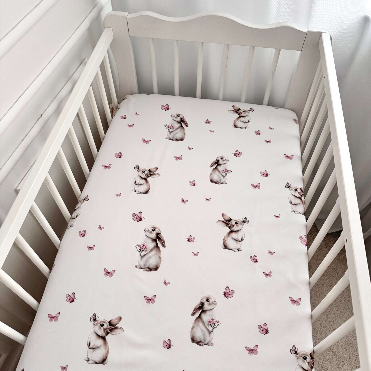 Prześcieradło bawełna KRÓLICZEK I MOTYLKI Darmowa dostawa od 500 zł! Prześcieradło bawełna KRÓLICZEK I MOTYLKI