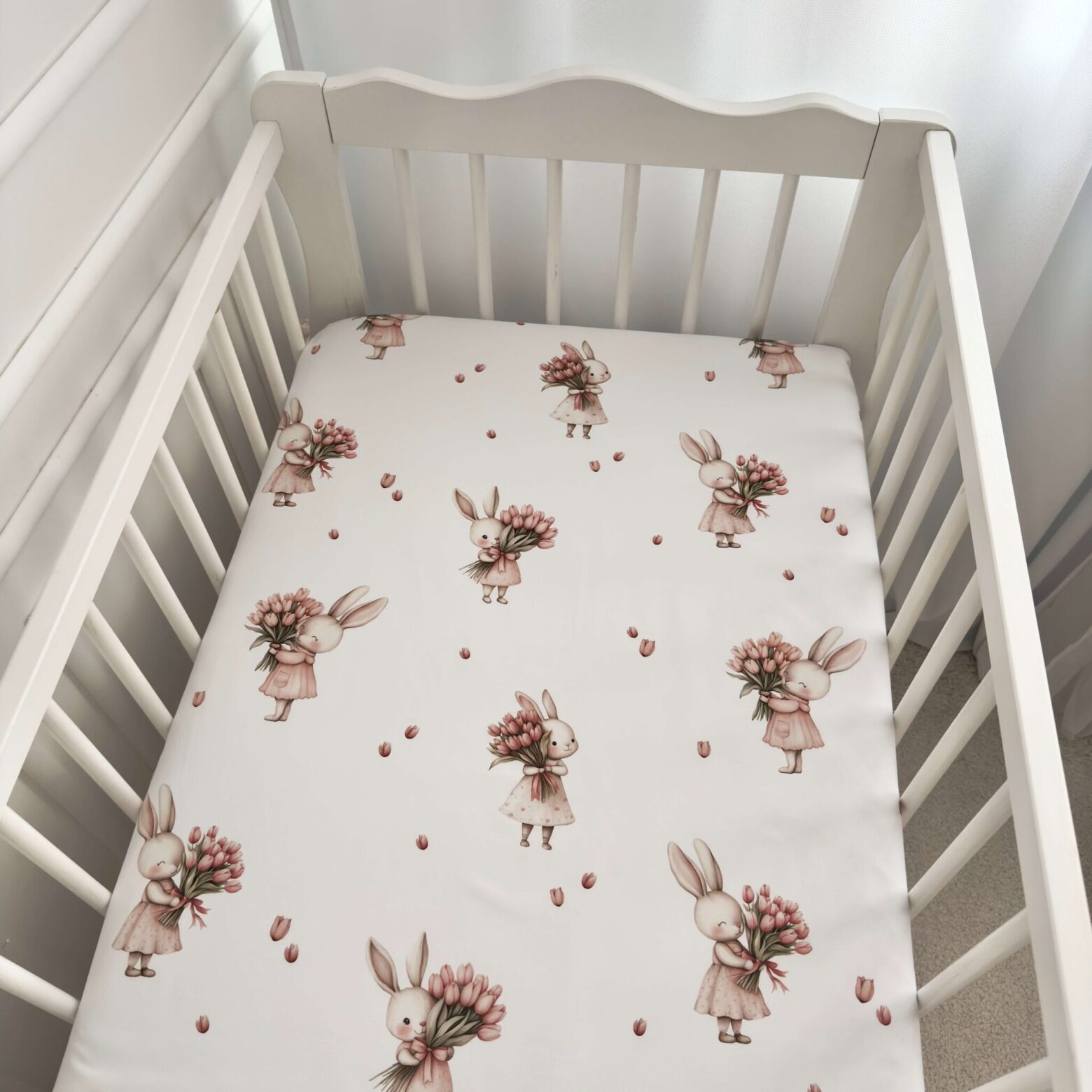 Kołderka + poduszka z wypełnieniem. Kolekcja KRÓLICZEK Z TULIPANEM + VELVET róż