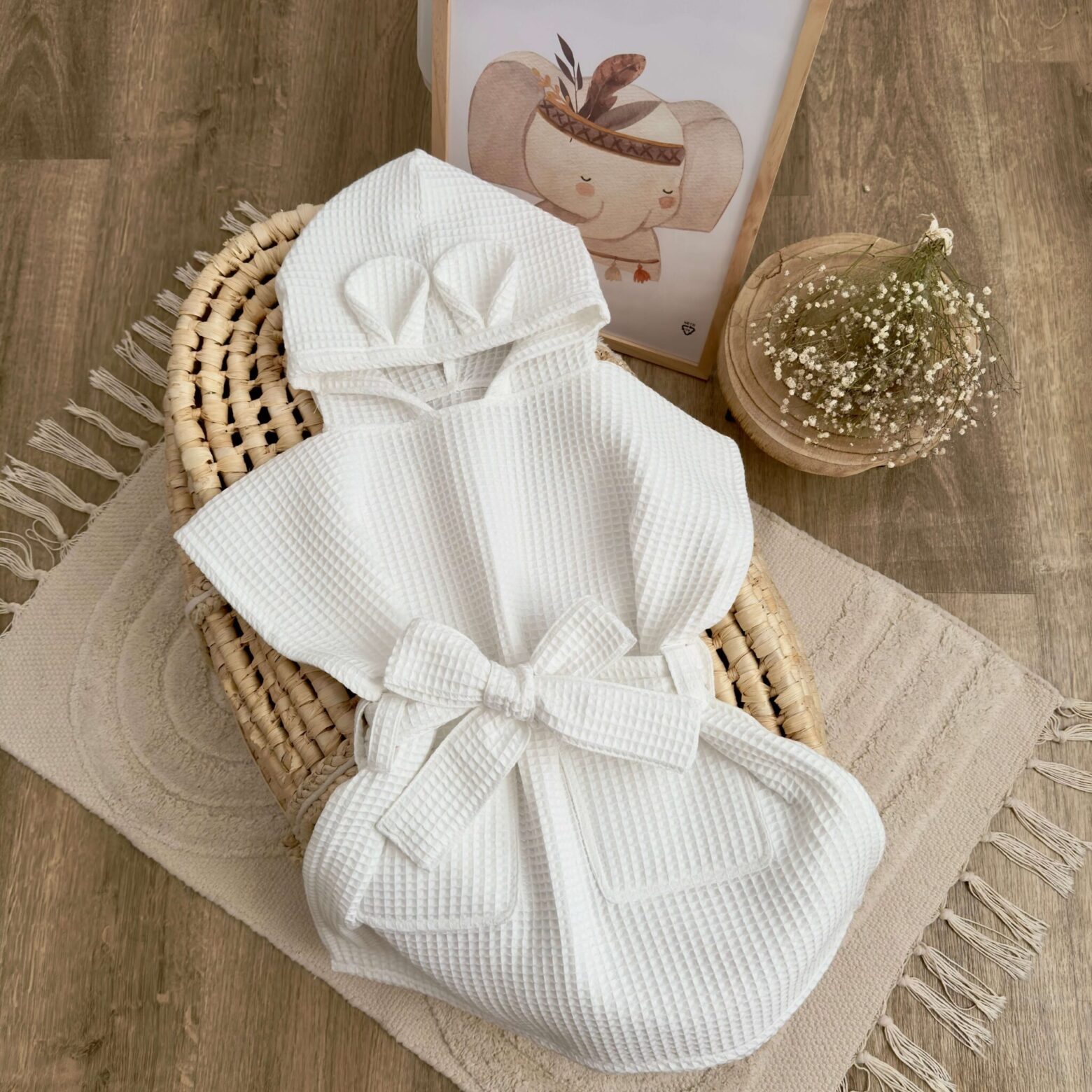 Praktyczny i stylowy ręcznik PONCHO z wyjątkowej tkaniny wafelkowej to must-have w każdej dziecięcej wyprawce. Lekki, chłonny i delikatny dla skóry, idealnie otula Maluszka po kąpieli w domu, na basenie czy plaży.