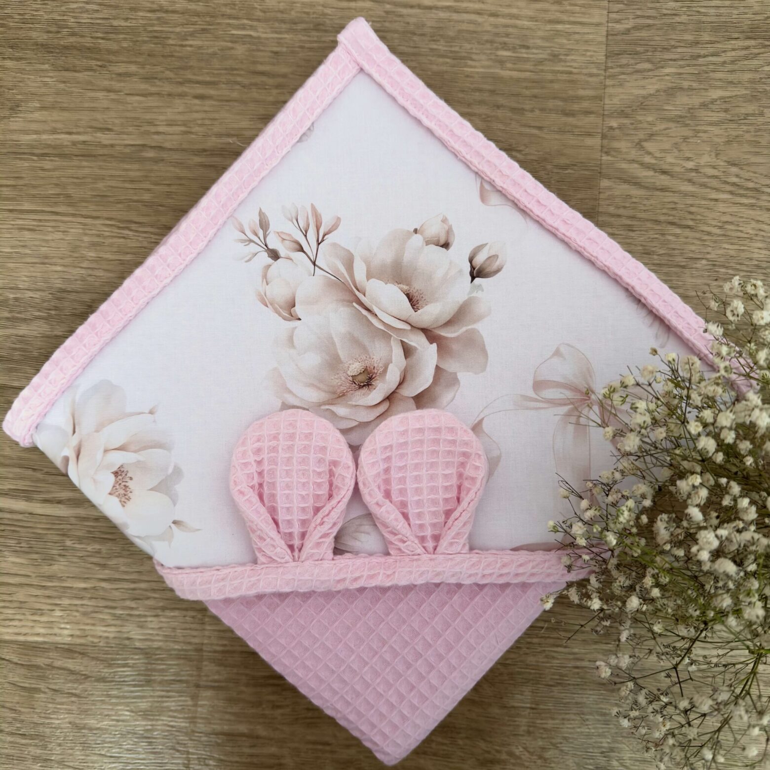 Ręcznik niemowlęcy ANEMONY Z KOKARDKĄ + WAFEL róż Darmowa dostawa od 500 zł! Ręcznik niemowlęcy ANEMONY Z KOKARDKĄ + WAFEL róż