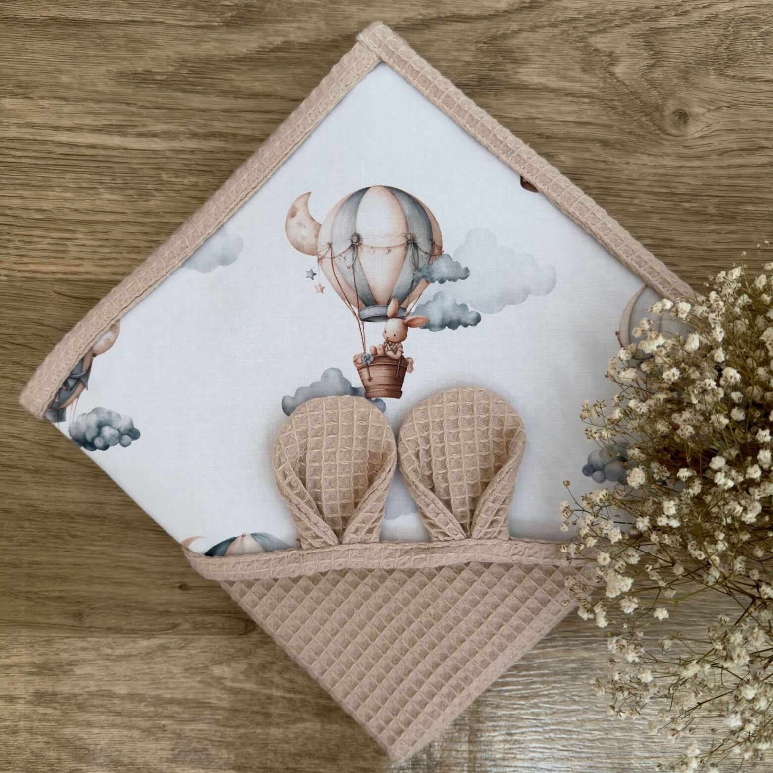 Napisz pierwszą opinię o „Ręcznik niemowlęcy BALONOWA PRZYGODA + WAFEL beż”