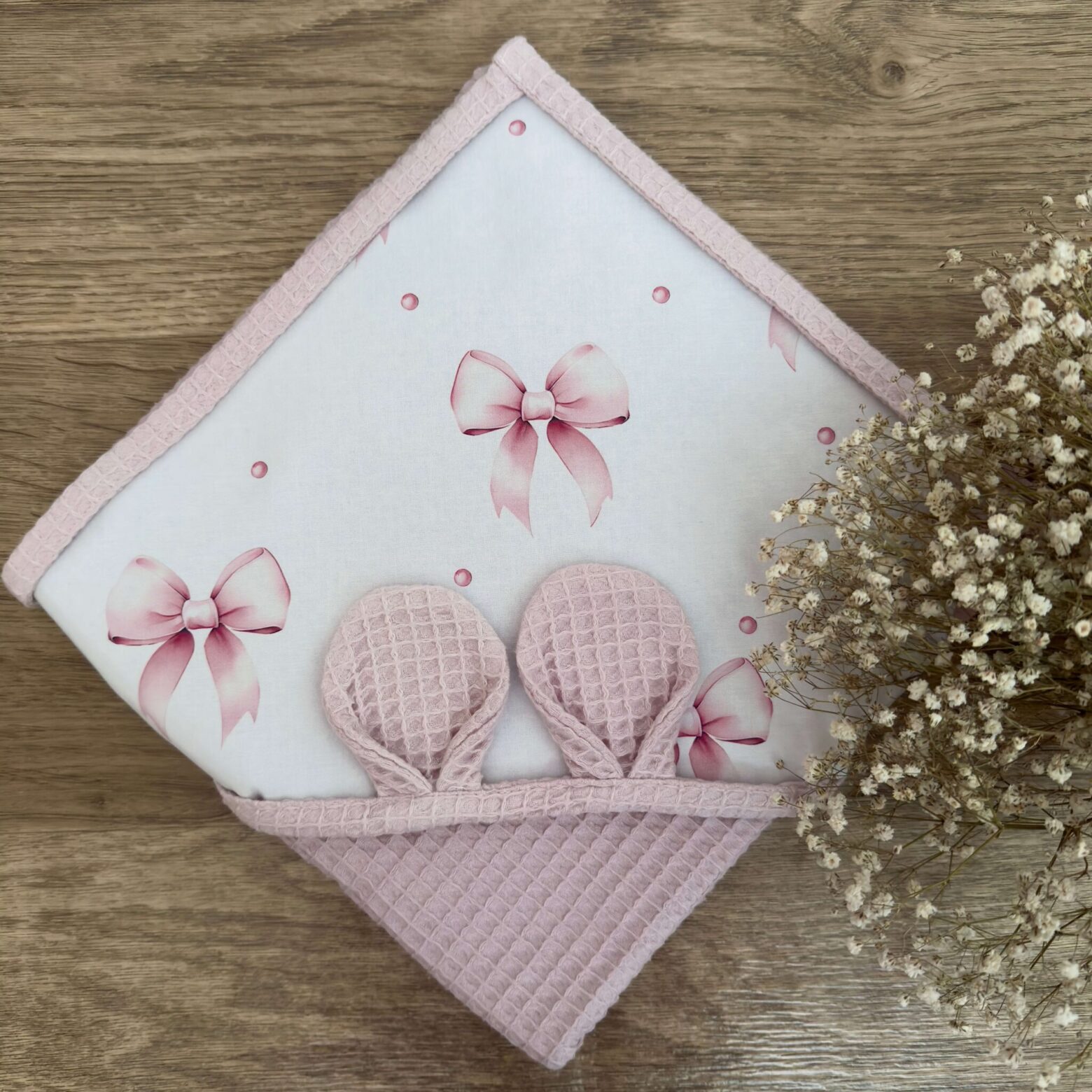Ręcznik niemowlęcy KOKARDKI + WAFEL brudny pudrowy róż Darmowa dostawa od 500 zł! Ręcznik niemowlęcy KOKARDKI + WAFEL brudny pudrowy róż