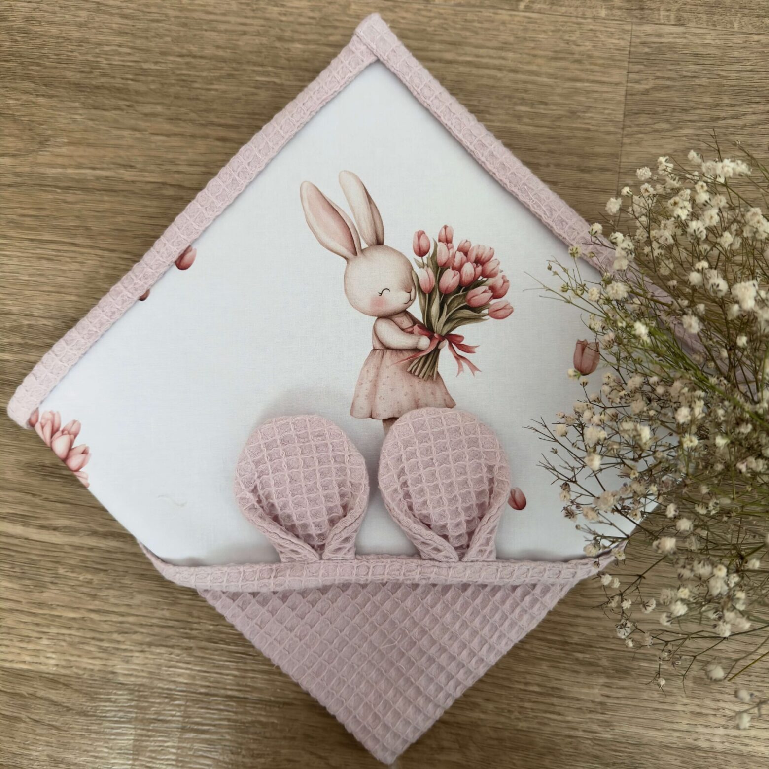 A wyjątkowa struktura przypominająca wyglądem wafelek sprawi, że maluszek nie tylko będzie dokładnie wysuszony, ale również zachwyci on wszystkich swoim uroczym odzieniem :).