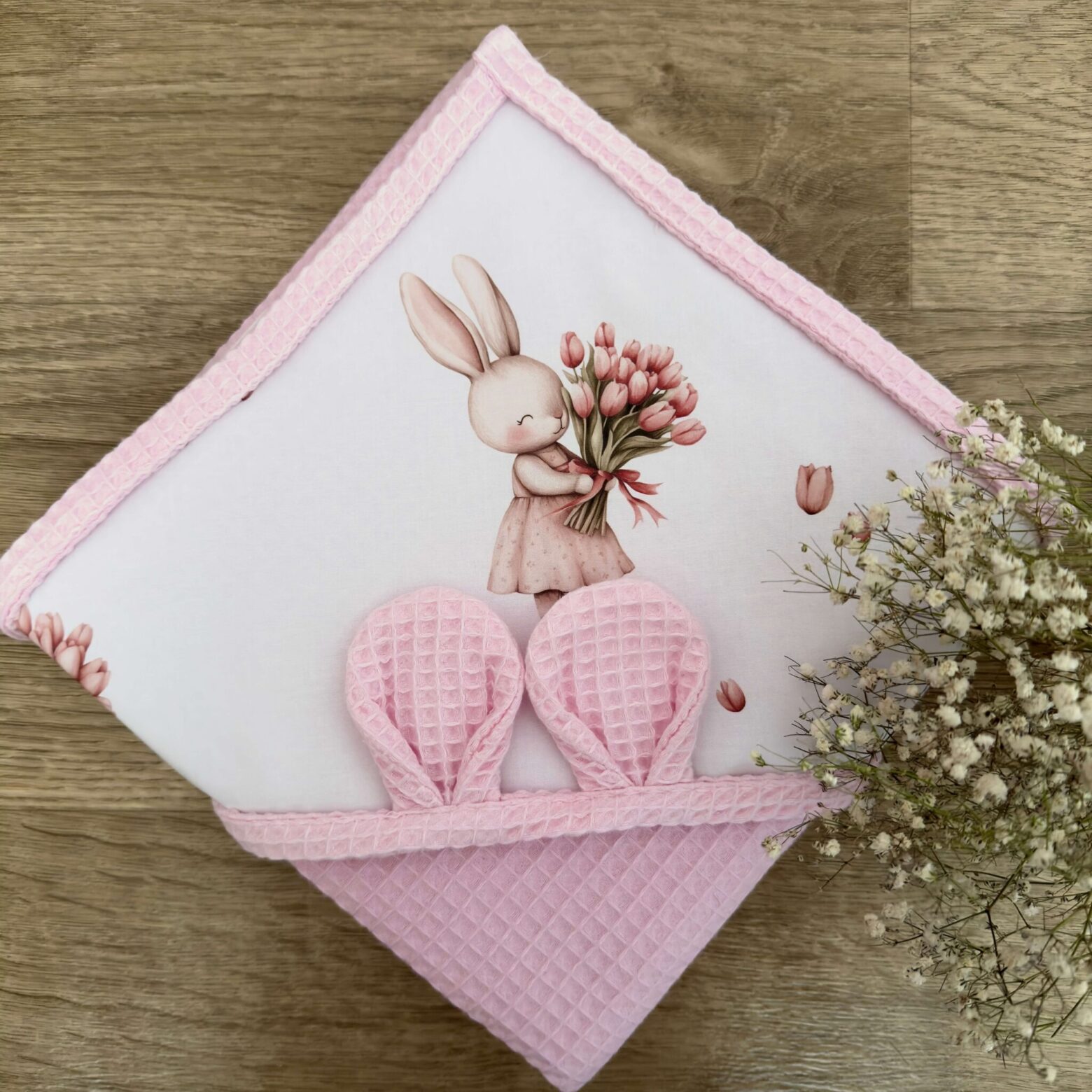 A wyjątkowa struktura przypominająca wyglądem wafelek sprawi, że maluszek nie tylko będzie dokładnie wysuszony, ale również zachwyci on wszystkich swoim uroczym odzieniem :).