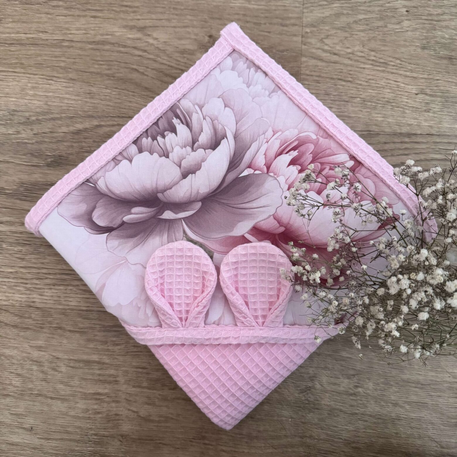 Ręcznik niemowlęcy PIWONIE + WAFEL róż